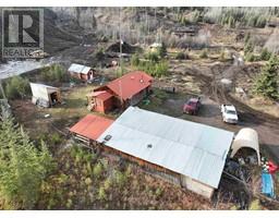 This rustic log home is based on 80 acres near the North end of beautiful Decker Lake. The home site occupies approximately 5 acres with numerous outbuildings and a 752 sq ft log home. There is a shop with electricity, several storage buildings and a large garden space. This cozy home has a woodstove and consists of 1 bedroom, 1 bathroom, kitchen, living area, mudroom and storage. Lakes Creek dissects the property with a new bridge spanning the creek. Moose, elk, deer and bears are all regular visitors on the property and there is access to Crown Land immediately from the entrance. A lot of potential for this piece of land as it also hosts large gravel deposits and sand. (id:59116)