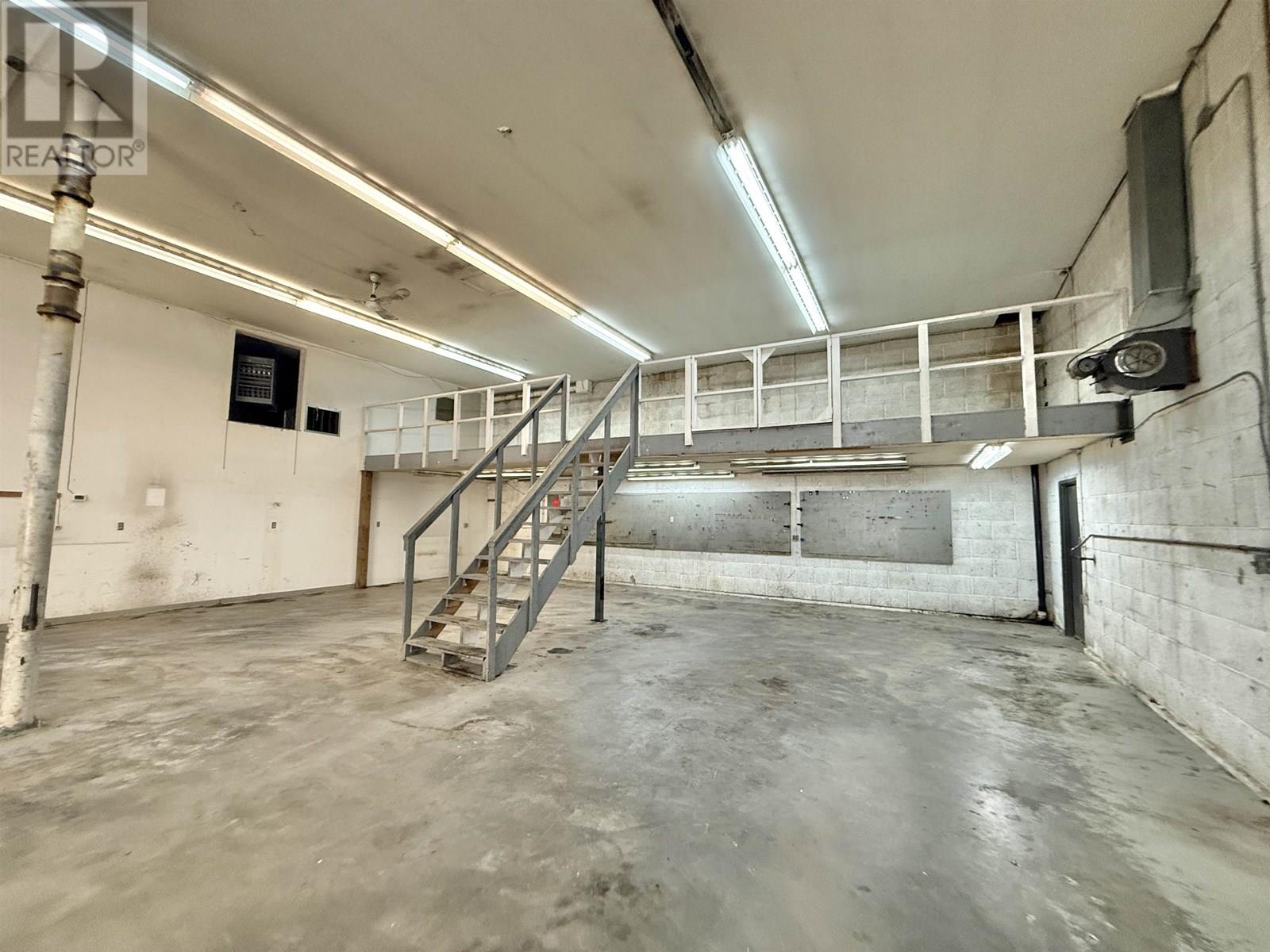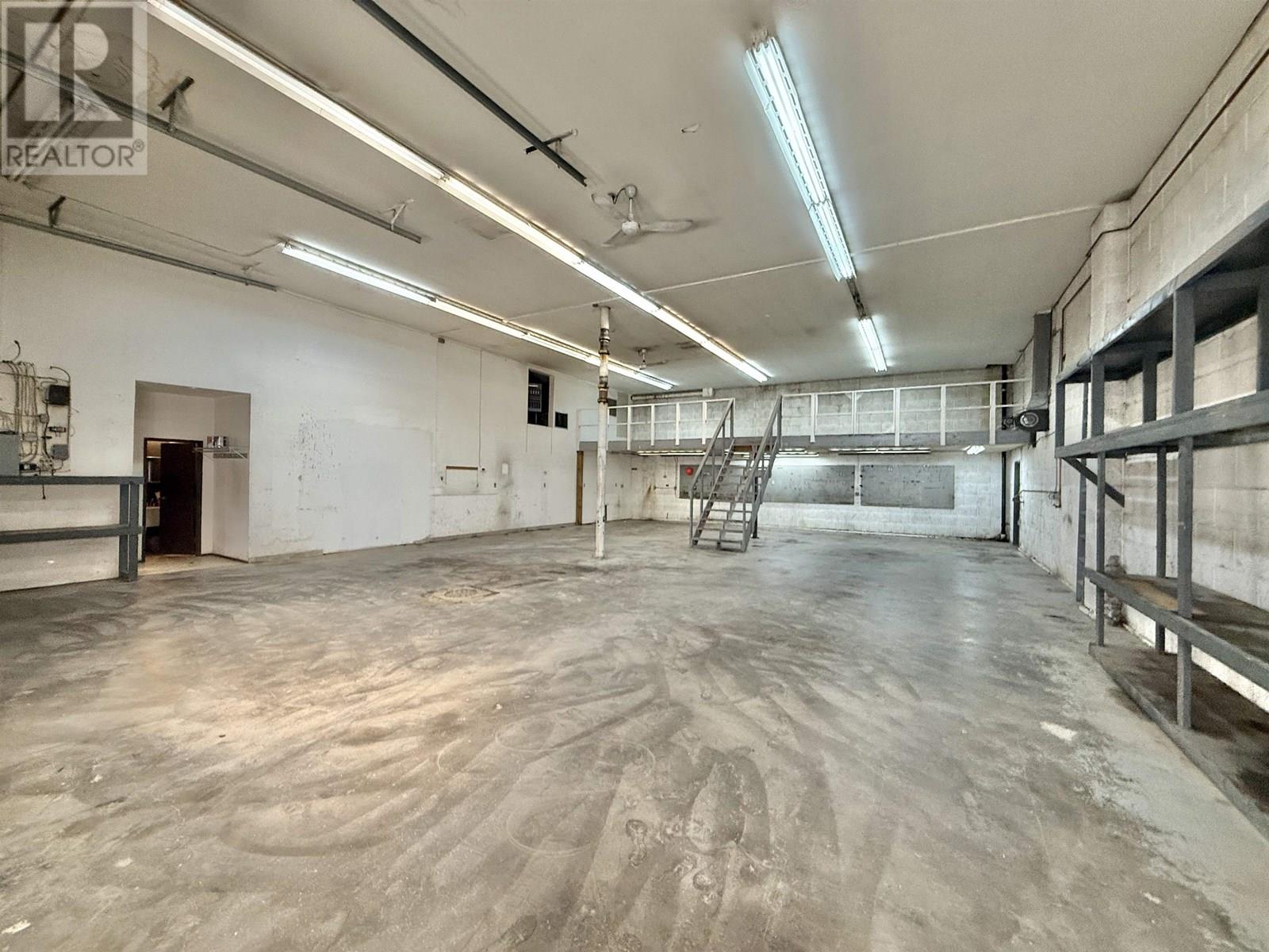 Approximately 3500 square feet of workspace, including a MASSIVE workshop (2400 sq ft) with 2 huge 14' high garage doors and a 300 sq ft office/storefront. Located on Keis Ave., which is located just off Highway 97, offering great exposure and located just minutes from the downtown core. Garage bay also has a 40'X12' mezzanine. Outside there is an additional fenced compound (60'X60') and a detached building (40'X20') that's perfect for extra storage. All of the buildings on this street are tenanted so there are successful businesses throughout the development. Good parking area too. Available immediately! Zoning allows many other uses including studios, storage, fleet services, recycling services, warehousing and more. Perfect location in Quesnel's industrial area. * PREC - Personal Real Estate Corporation (id:59116)