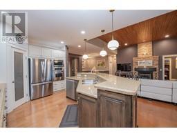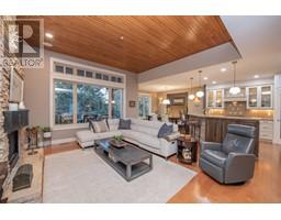 Welcome home to this stunning 4-bed, 4-bath character-style house located at Predator Ridge. This former show home is ideally situated on Mashie Crescent, close to all amenities. With 3,392 square feet of living space, you will immediately feel welcomed upon entering through the grand entryway. The home features a custom metal mantel and a rock fireplace, as well as a tongue-and-groove ceiling in the living room. The well-appointed kitchen boasts granite countertops and stainless steel appliances and easy access to the dining area. Main floor includes master suite with a large ensuite bathroom and walk in closet, an office, and a guest bedroom with a full bathroom. On the lower level, you will find two additional bedrooms, each with its own ensuite bathroom, along with a great room, a large media room, a games room and a wine room. There is also plenty of extra storage for all your recreational activities/toys. Bathroom floors are all heated, upstairs by electric heat and downstairs by water. Enjoy the serene atmosphere of the private back deck and patio, perfect for sipping your morning coffee or sharing a glass of wine with friends after a day of golf, tennis, pickleball, or hiking. The spacious garage features finished flooring and built-in shelving, accommodating two vehicles and a golf cart (or providing space for a workshop). Predator Ridge offers numerous activity options, as well as dining. Visit today to enjoy the North Okanagan! (id:59116)