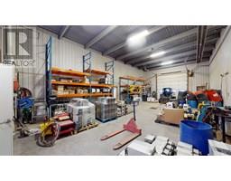 2 shops on 2.5 acres. First shop at front of property is divided into 3 bays and a total of 5 overhead 16'x 18' doors. The shop space features a wash bay complete with Hotsie equipment. There are division walls in the shop area providing for 3 separate tenants in one building with two office areas. Currently the main building is rented to one tenant on a month-to-month basis. (Tenant willing to stay with new lease). There are a total of 5 offices and reception area. The second shop is 60x80 with 18' door. It is set up to easily hold 2 truck and trailers as well as a tractor. There is a reception area and a mezzanine for an office or coffee room. the current tenant is month to month lease and willing to sign on for a longer term. Both shops can be purchased and moved into by new buyer. The property is well graveled and has storm drain basin on property. Good fencing and security system included. (id:59116)