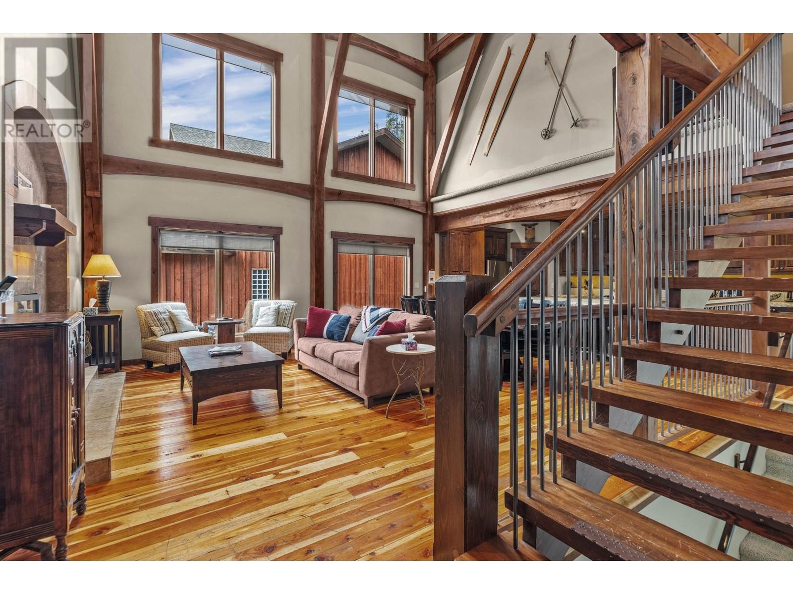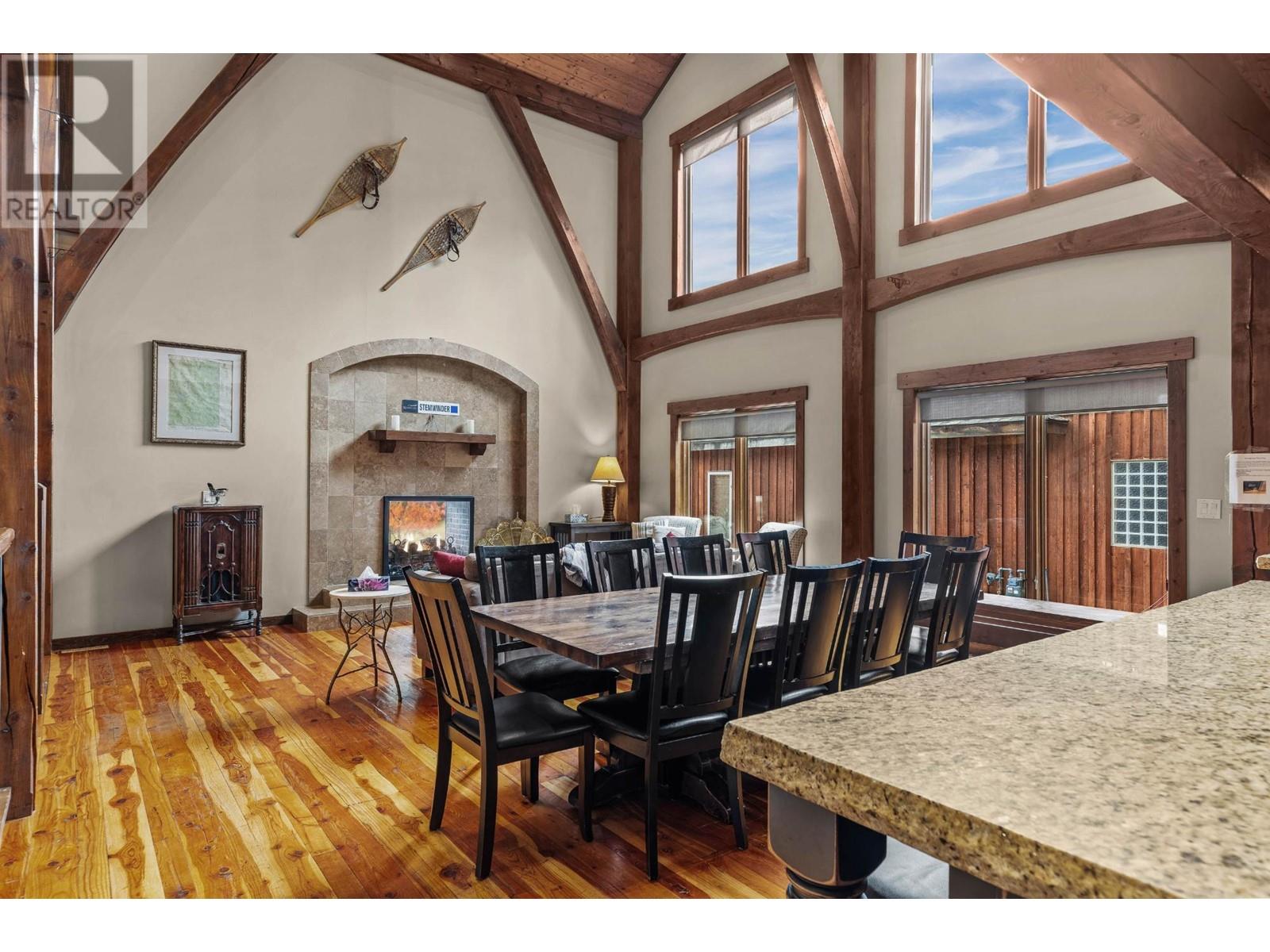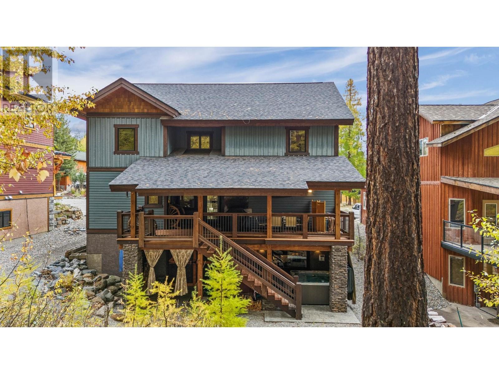Nestled in the Bavarian Village of the Rockies, this stunning Tyee-built timber frame home features 5 bedrooms, 4 bathrooms, and 4 cozy gas fireplaces, creating a perfect mountain retreat. Located steps from Kimberley Alpine Resort and Trickle Creek Golf Course, it's an all-season paradise. With a successful Airbnb history generating approximately $100,000 annually, this property offers excellent investment potential. Step inside to find an open living area adorned with beautiful timbers and beams. The gourmet kitchen boasts granite countertops, stainless steel appliances, and a gas stove top. The main floor master suite offers a luxurious ensuite with a steam shower and a spacious walk-in closet, while all bathrooms feature in-floor heating. Enjoy the covered deck, engineered for a hot tub, or retreat to the upstairs bunk rooms and quiet nook with a fireplace and balcony. The lower level is perfect for entertaining, complete with a games room and wet bar that leads to a covered deck with a hot tub. With ski-in access and a five-minute walk to lifts and ski-in, winter sports enthusiasts will love the convenience. In summer, the acclaimed Trickle Creek Golf Resort awaits, weaving through the stunning alpine landscape. This home combines luxurious living with a vibrant outdoor lifestyle. Experience the beauty and community of Kimberley, where adventure meets comfort in the heart of the Rockies! Imagine! (id:59116)
