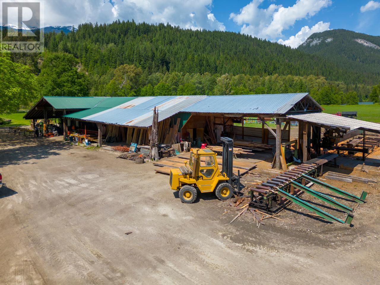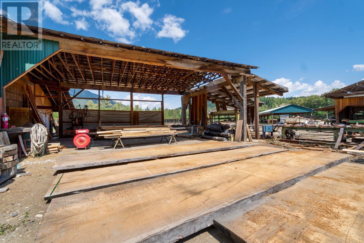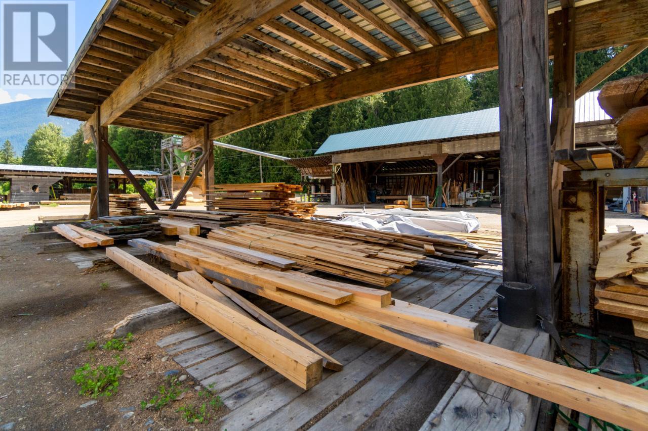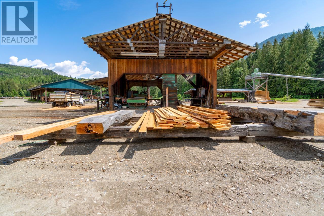 Incredible business and homestead opportunity! Discover the perfect blend of work and relaxation at this remarkable property, boasting the renowned Boards by George Sawmill, a thriving business with a 43-year legacy. Situated on 33 expansive and flat usable acres, this real estate gem offers endless potential. Nestled alongside the Lardeau River, this property presents a 4-bedroom, 1-bath home, and sawmill overlooking the river. The mill processes primarily fir, as well as larch, cedar, spruce, and hemlock and can process side cuts, boards, T&G, shiplap, trim, siding, and flooring. It is one of the last mills that can cut 40? long and logs up to 7? in diameter, with The Duncan Ironworks sawmill. The sale includes all the equipment necessary to break down logs from start to finish. From unloading, and handling to milling, drying, planing and packaging. It has a complete repair and maintenance shop with parts, tools, welder, milling machines, and a large supply of miscellaneous milling equipment. The property has numerous outbuildings and an office. The business is ready to step into and is still being used on a part-time basis. BBG comes with a valuable client list and an excellent reputation. The owner is willing to mentor and share contacts. Please see MLS 2471146 to view the full residential information of this property. (id:59116)