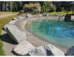 Dream custom home on 17.23 acres. Luxury styled 5 bedroom home with lofty high ceilings, master on the main floor, Brazilian cherry hardwood flooring, woodstove, heat pump, and designer kitchen complete with butler pantry. Lovely pond feature with covered picnic area perfect for entertaining guests or a dip in the summertime. Second home with its own septic and well. Zoned RU-ALR with privacy, very quiet location, home is set back and not visible from the road. 5 minutes to Kitty Coleman Beach, Seal Bay Park and minutes to international airport, college, golf courses and aquatic center in popular North Courtenay rural area, yet, close to town and amenities. Property goes back to a creek, with vista views of acreage. Perfect for a homesteader-hobbyist, there are different outbuildings for a studio, gazebo, 2 greenhouses, workshop, boat-machinery covered storage, in addition a kiosk at the road. Price includes GST. Three separate 200 amp services, 2 walk-in coolers. 4,000 strawberry plants, 575 blueberry plants, fully fenced front 6 acres. Property goes back to Kitty Coleman Creek. Deep well at approximately 900 gallons an hour near pool-pond house, shallow well 9 feet deep producing approximately 80 gallons an hour during the driest time of the year. Property has excellent drainage. One of a kind opportunity. All information to be verified by independent source-inspection. (id:59116)