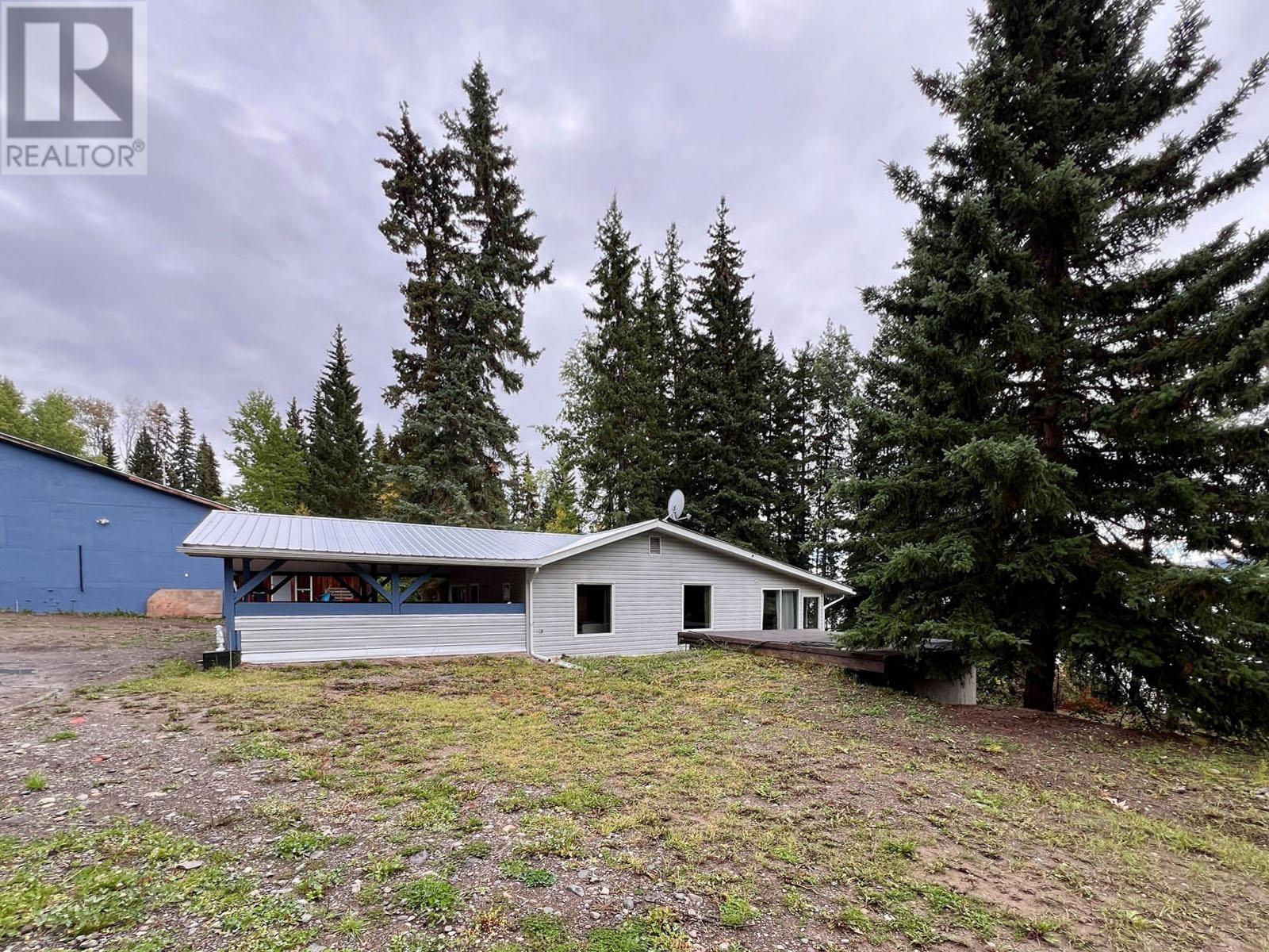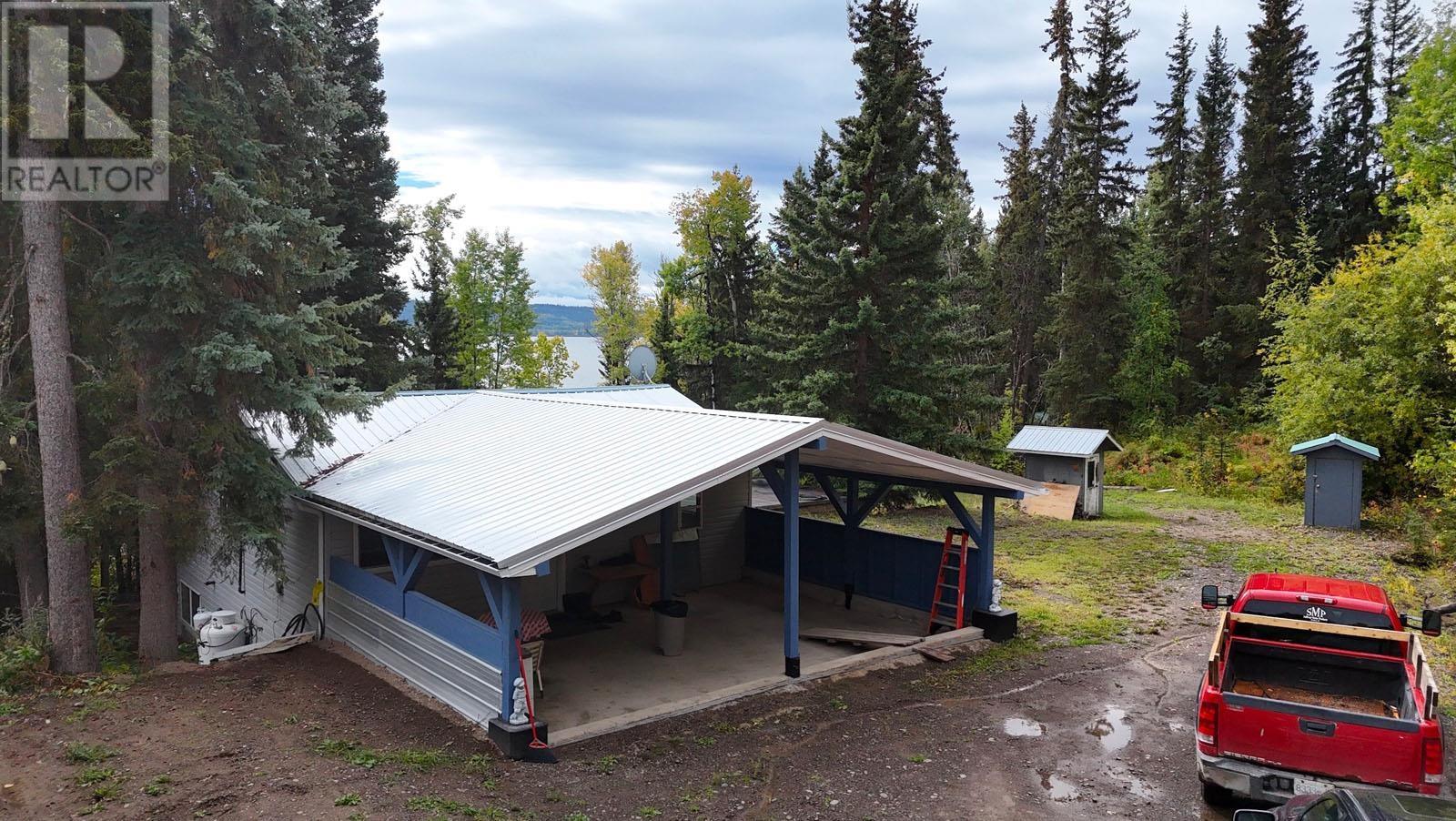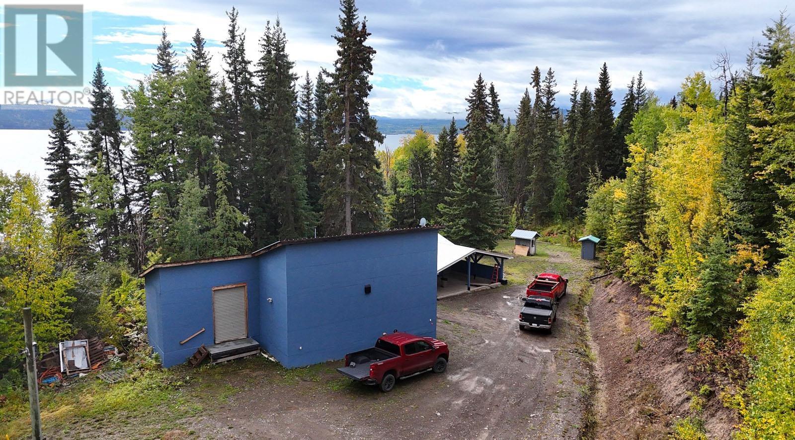 This stunning 2.28-acre lakefront property boasts 202 ft of shoreline with a boat launch & water rights (Lic.# 103646). The house offers 2000+ sq ft, including 2 bdrms, 2 bathrooms, an open-concept kitchen/dining/living room, and a covered cement deck. The basement offers a bdrm, bathroom, family room with patio doors, laundry, and storage. Recent upgrades include new windows, aluminum roof, hot water tank, kitchen taps, and flooring throughout. Water quality is exceptional, with two springs tested for potability - one producing up to 30,000 gal/day. The property includes a large shop, small shop, and woodshed. Ideal for residential or business use, the zoning supports up to 500 sq ft of home business activity. Situated 40 mins from Vanderhoof and 1 hr 40 mins from Prince George. (id:59116)