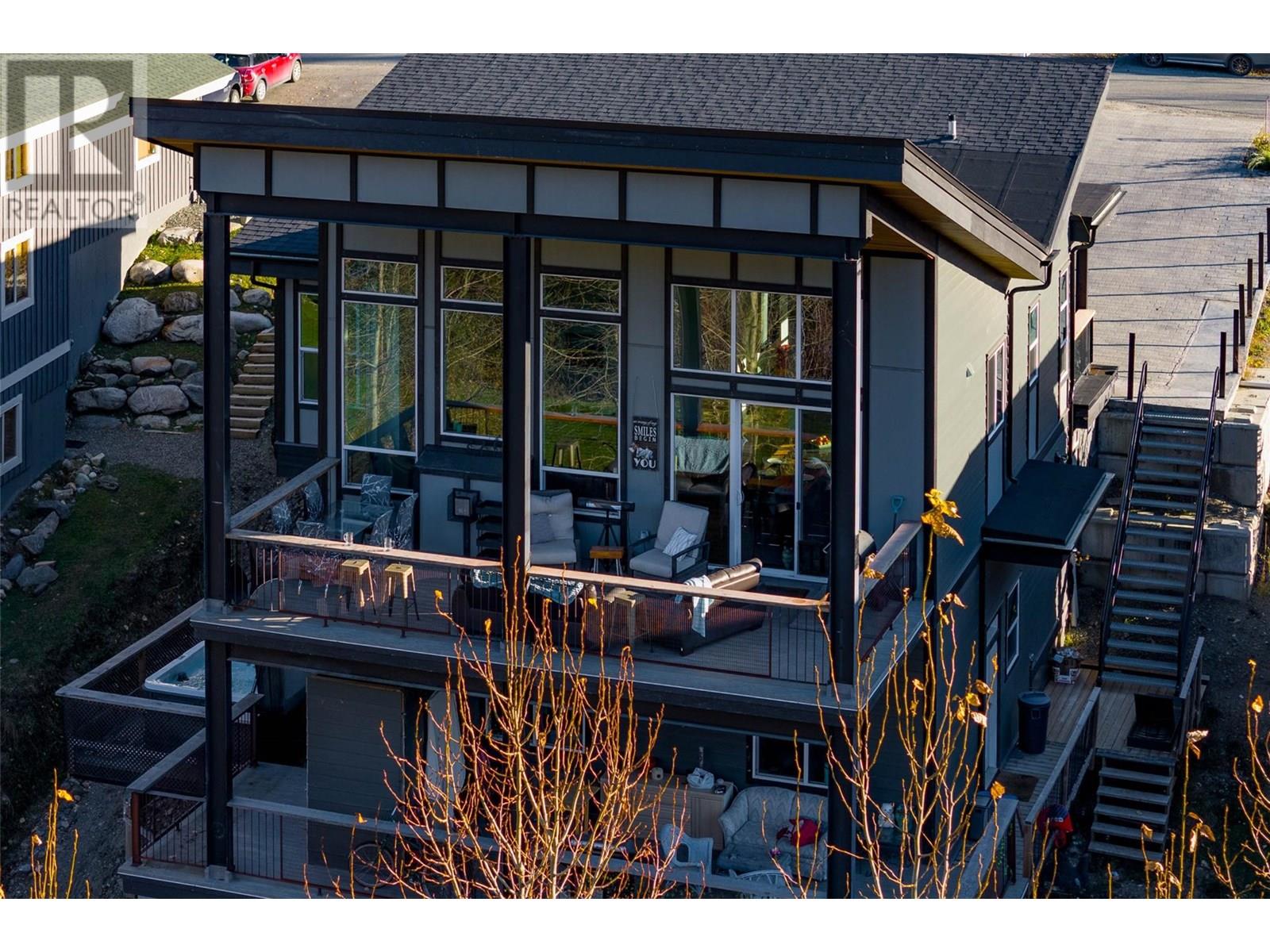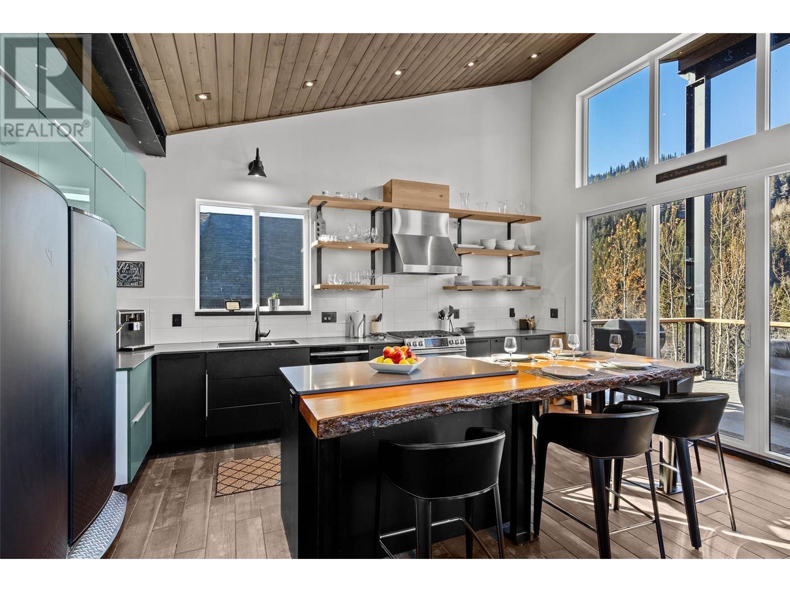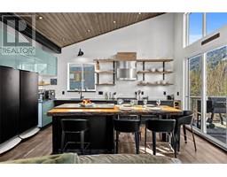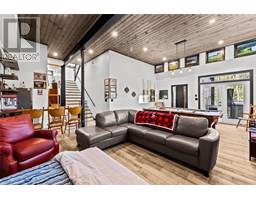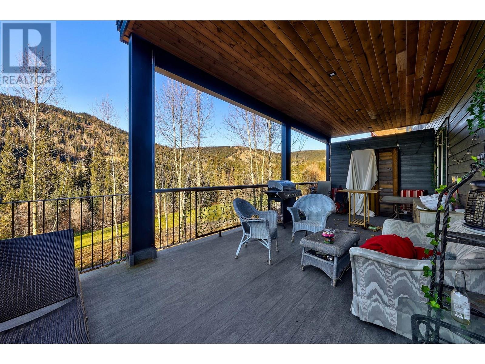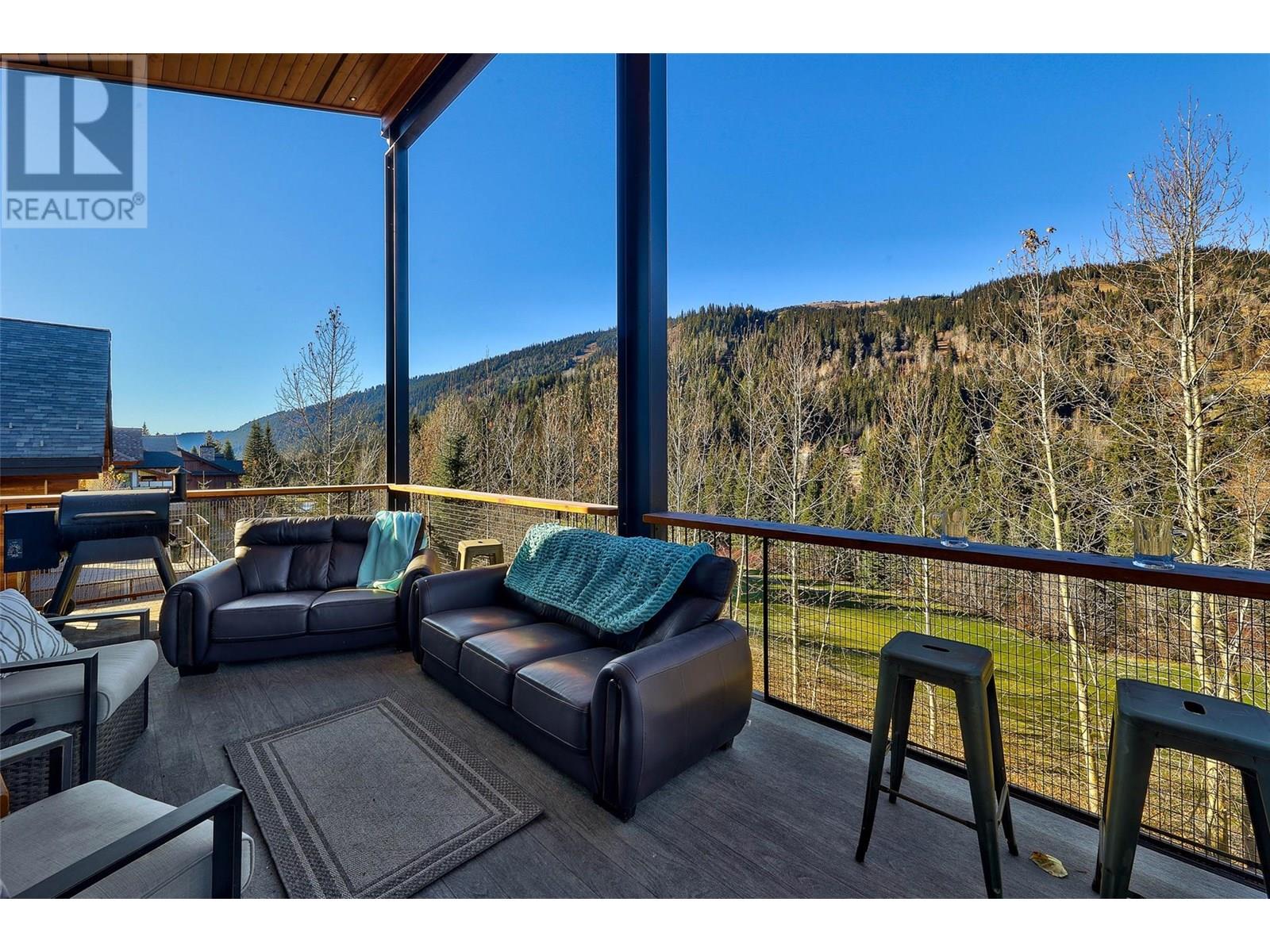 This carefully designed 2019 custom 5 bedroom, 5 bathroom home with level entry, overlooking the 8th fairway of the 'Graham Cooke' designed golf course is a must see! Be immediately impressed by the spaciousness of vaulted ceilings & captivating mountain views from walls of windows in the living room & kitchen. The kitchen is a chef's dream featuring 6 burner gas range, double oven, side x side industrial fridge/freezer, plenty of quartz counter space & a gorgeous live edge island table to intimately gather with your guests. Glass sliding doors lead from the kitchen to the spacious covered deck, perfect for outdoor entertaining on warm summer days. Enjoy the comfort of a main floor primary bedroom & luxurious ensuite bathroom highlighting a steam shower & freestanding tub with outstanding mountain views. Lower level features 12' ceilings, 2 large bedrooms with lofts, full bath & spacious rec room with bar, perfect for entertaining. Glass doors lead to large deck & private hot tub. 2 bed legal suite. 1,000 sqft workshop. 2 car garage. Furnished. See listing for video and 3D tours. (id:59116)