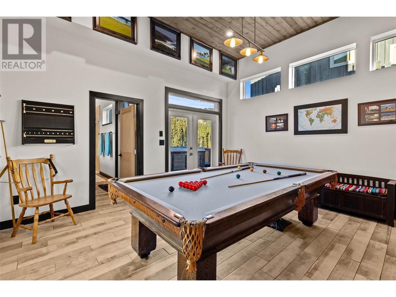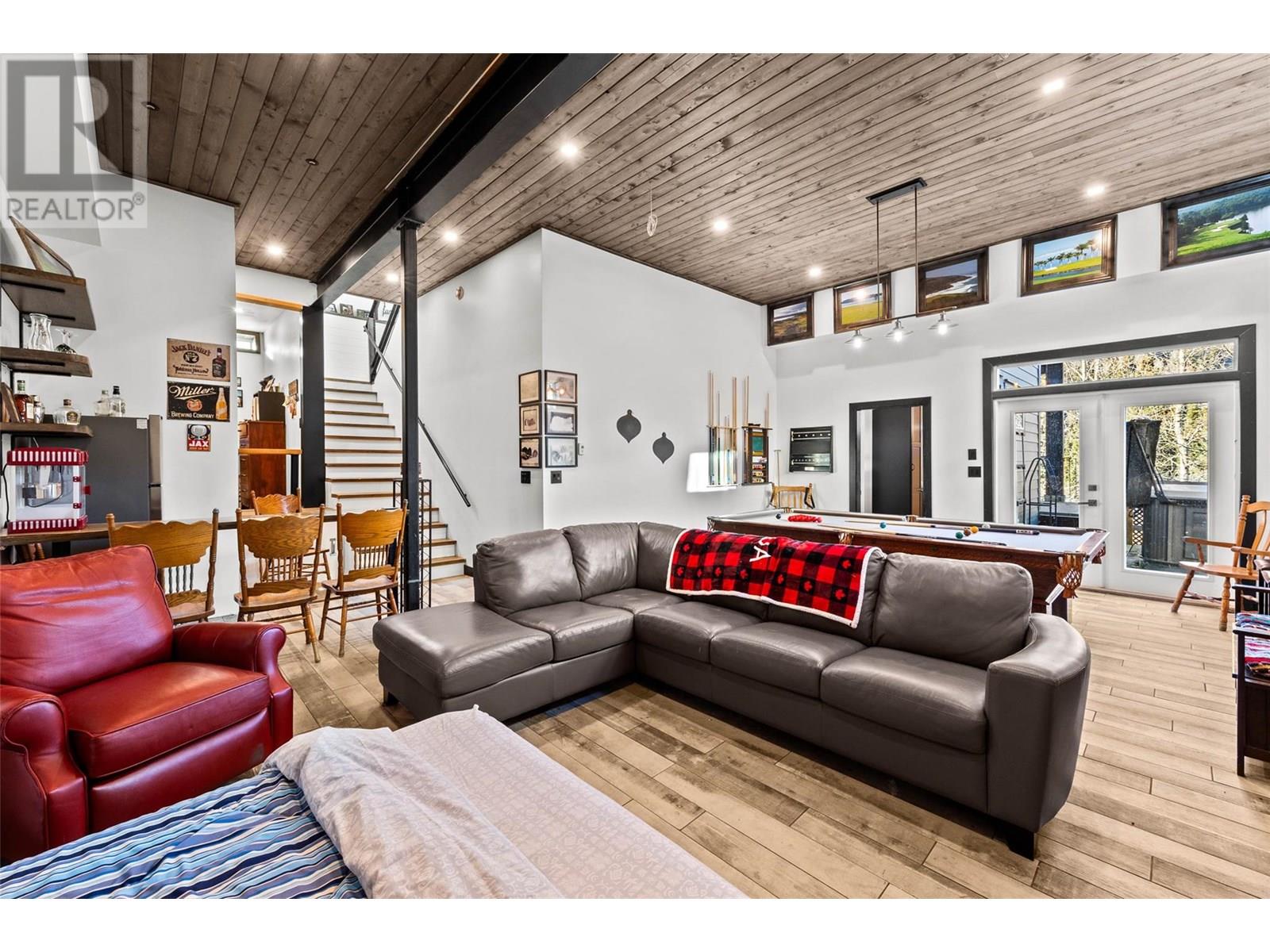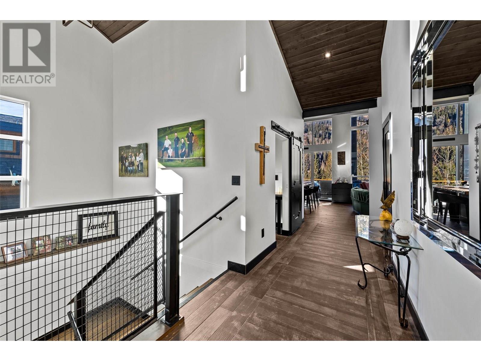 This carefully designed 2019 custom 5 bedroom, 5 bathroom home with level entry, overlooking the 8th fairway of the 'Graham Cooke' designed golf course is a must see! Be immediately impressed by the spaciousness of vaulted ceilings & captivating mountain views from walls of windows in the living room & kitchen. The kitchen is a chef's dream featuring 6 burner gas range, double oven, side x side industrial fridge/freezer, plenty of quartz counter space & a gorgeous live edge island table to intimately gather with your guests. Glass sliding doors lead from the kitchen to the spacious covered deck, perfect for outdoor entertaining on warm summer days. Enjoy the comfort of a main floor primary bedroom & luxurious ensuite bathroom highlighting a steam shower & freestanding tub with outstanding mountain views. Lower level features 12' ceilings, 2 large bedrooms with lofts, full bath & spacious rec room with bar, perfect for entertaining. Glass doors lead to large deck & private hot tub. 2 bed legal suite. 1,000 sqft workshop. 2 car garage. Furnished. See listing for video and 3D tours. (id:59116)