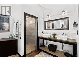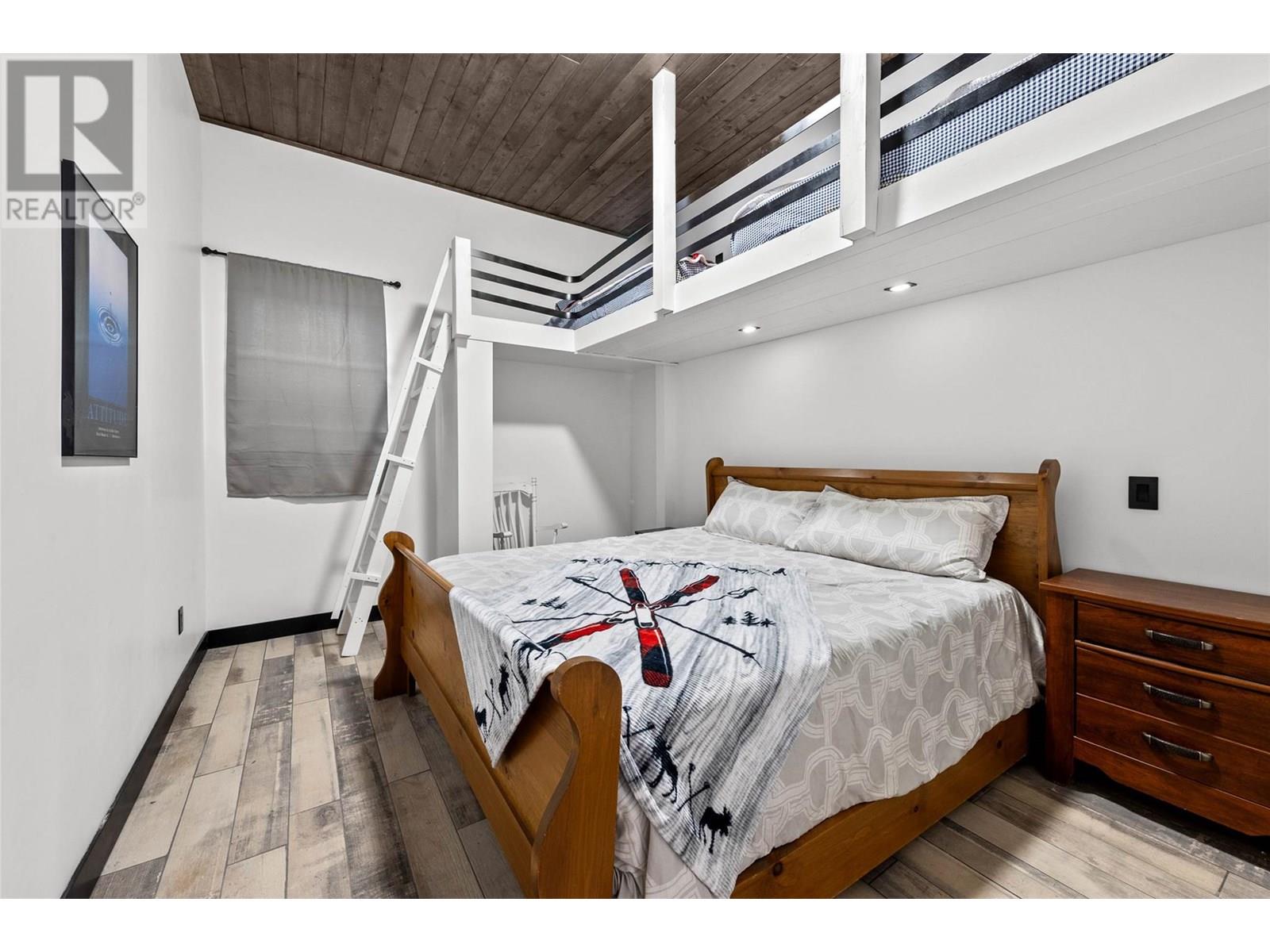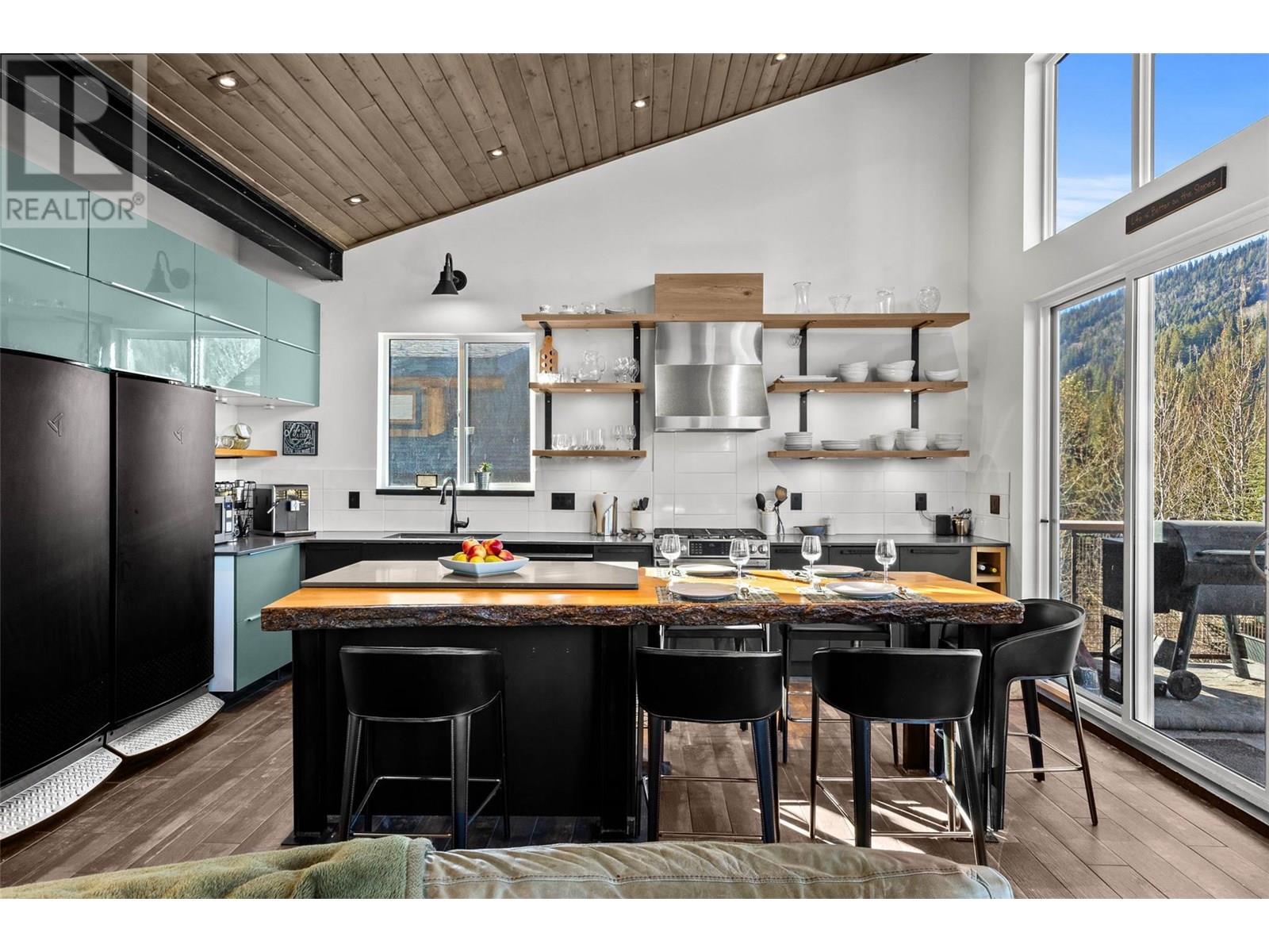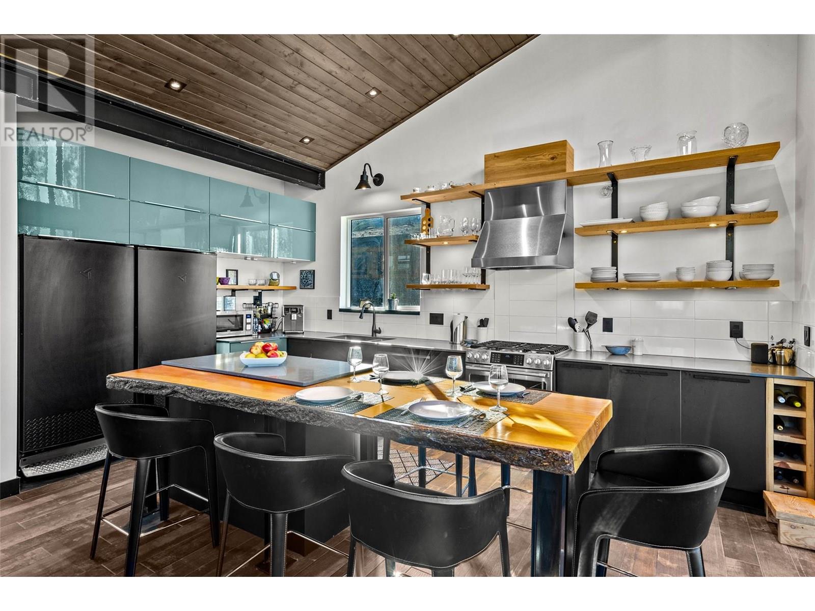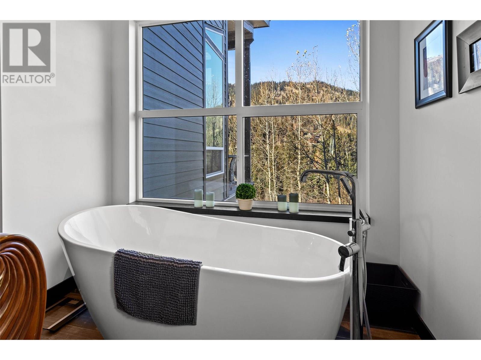 This carefully designed 2019 custom 5 bedroom, 5 bathroom home with level entry, overlooking the 8th fairway of the 'Graham Cooke' designed golf course is a must see! Be immediately impressed by the spaciousness of vaulted ceilings & captivating mountain views from walls of windows in the living room & kitchen. The kitchen is a chef's dream featuring 6 burner gas range, double oven, side x side industrial fridge/freezer, plenty of quartz counter space & a gorgeous live edge island table to intimately gather with your guests. Glass sliding doors lead from the kitchen to the spacious covered deck, perfect for outdoor entertaining on warm summer days. Enjoy the comfort of a main floor primary bedroom & luxurious ensuite bathroom highlighting a steam shower & freestanding tub with outstanding mountain views. Lower level features 12' ceilings, 2 large bedrooms with lofts, full bath & spacious rec room with bar, perfect for entertaining. Glass doors lead to large deck & private hot tub. 2 bed legal suite. 1,000 sqft workshop. 2 car garage. Furnished. See listing for video and 3D tours. (id:59116)