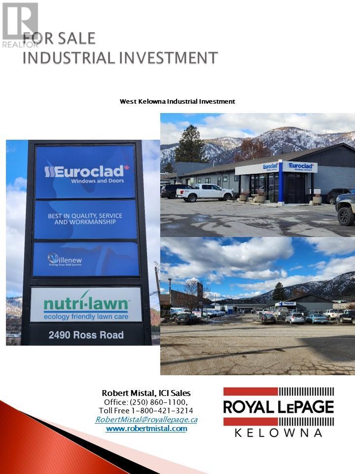 Prime rare freehold Industrial investment opportunity, located within the “West Kelowna Industrial Park”, near Highway 97. High traffic industrial & commercial location for this 1.0 acre site, zoned I-1, multi-tenanted, 100% fully leased facility with ample parking stalls (40+) available for tenants/customers. Excellent central location, prime industrial growth area in West Kelowna. One (1.0) acre lot, zoned I-1 Industrial, future redevelopment potential. Fully Leased warehouse, two long term tenants occupy total approx. 13,083 sq/ft GLA. Excellent land/industrial investment in the busiest industrial hub area of West Kelowna, with extremely low vacancy rates. (id:59116)