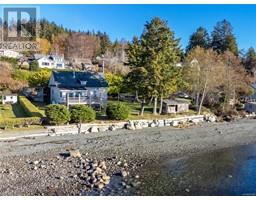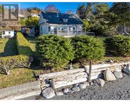 Stunning oceanfront! 2 story home situated on the southern shores of Malcolm Island, within the community of Sointula. It offers approx. 125ft of walk-on waterfront and outstanding views to the south and west across Broughton Strait and over to Vancouver Island, with the Vancouver Island mountains as the backdrop. The property has wide lawn to the edge of the beachfront, providing walk-on access to the pebble beach out front. The home is an older, stucco-sided 1920s home which offers some of the character and style from that era. There have been two additions to the home over the years, where a family room and the primary bedroom on the main floor were created. Rich wood floors and trim throughout provide a welcoming charm. At the front of the home is the family room, a cozy wood-paneled and carpeted room perfect for watching TV and relaxing. At the back of the home is the primary bedroom with windows offering ocean views. To the right of the entry foyer a short hall leads past the laundry room and bathroom into the main living space, which consists of a kitchen, dining area and living room. Sliding doors lead from the living room out to the large patio and provide gorgeous views over the beach and the ocean beyond. A small propane fireplace provides ambient warmth in the living space, complemented by a baseboard heater. Stairs off the living room lead to the upper level, where there are three bedrooms, additional storage areas and a large open space at the top of the stairs. The unfinished basement is accessed from outside the home on the oceanside. The hot water tank and wood-burning furnace are down here, as well as some shelving and workshop space. Accessed from the living room as well as from stairs to the back yard, the patio stretches the width of the home, providing outdoor living space that takes advantage of the amazing views. The property is on the Sointula water and sewer systems and is serviced by BC Hydro electricity. (id:59116)