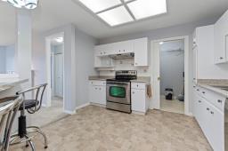 Fabulous north facing mountain views from this 3rd floor beautiful condo with 2 bedrooms and 2 full baths. The flooring has been replaced in the kitchen, living room and the bedrooms. Updated counter tops, back splash, island with eating bar, and 3 SS appliances. Some lighting has been replaced and the unit has been freshly painted throughout. There is in-suite laundry and a good sized balcony to enjoy the views. Come with 1 underground parking stall with storage unit in front of the stall. This is a wonderful complex, well maintained and provides options such as a guest suite, exercise room, and games room. Within walking distance to all amenities. 55+, no pets. * PREC - Personal Real Estate Corporation (id:59116)
