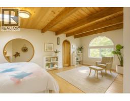 The Treehouse, where comfort and style merge. This 5-bed, 5-bath home features 2 suites+private studio, ideal for multigenerational living or an investment property. Thoughtfully designed; rooms flooded w/natural light highlighting unique design elements such as a 16'vaulted ceiling, custom woodwork, and contemporary finishes that include arched, hand-crafted, solid cedar interior doors, impressive old-growth cedar beams and a superb dovetail joinery staircase to a catwalk w/access to the oversized primary bedrm offering skylights and a hidden rooftop deck. The main suite also offers dining/kitchen/livingrm, laundry, access to the south-facing deck + two more bedrms, both w/ensuites. A newly updated second suite offers a private entry, 2 additional bedrms, bathrm, kitchen, cozy livingrm and laundry. Other features include a low-maintenance yard, plenty of parking, and prime location. Family home or an investment, this property offers endless possibilities w/its flexible layout. (id:59116)