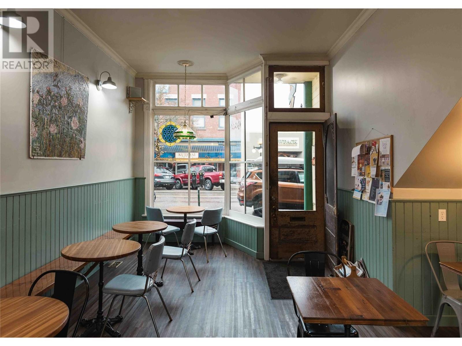 Nestled in the heart of Nelson's vibrant downtown, this cozy cafe offers a warm and inviting atmosphere surrounded by bustling restaurants, unique shops, and live music venues. With a history spanning over 30 years, this beloved coffee shop has become a staple for both residents and visitors. The cafe is renowned for its delicious muffins and a wide array of fresh, in-house baked goods. The menu caters to all tastes, offering delicious sandwiches, wraps, and vegan options that satisfy every craving. Customers can enjoy a cup of locally roasted coffee, specialty teas, or a range of other delightful drinks year-round. The high-profile location on historic Baker Street allows plenty of seating for people inside, with additional seating in the summer months out on the spacious patio, offering the perfect spot to enjoy a coffee and soak up the lively atmosphere of downtown Nelson. This is a fantastic opportunity to own a thriving and profitable cafe business in a prime location, with a strong loyal customer base and a reputation as one of Nelson's most beloved coffee shops. Don’t miss your chance to take the reins of this iconic cafe and continue its legacy. (id:59116)