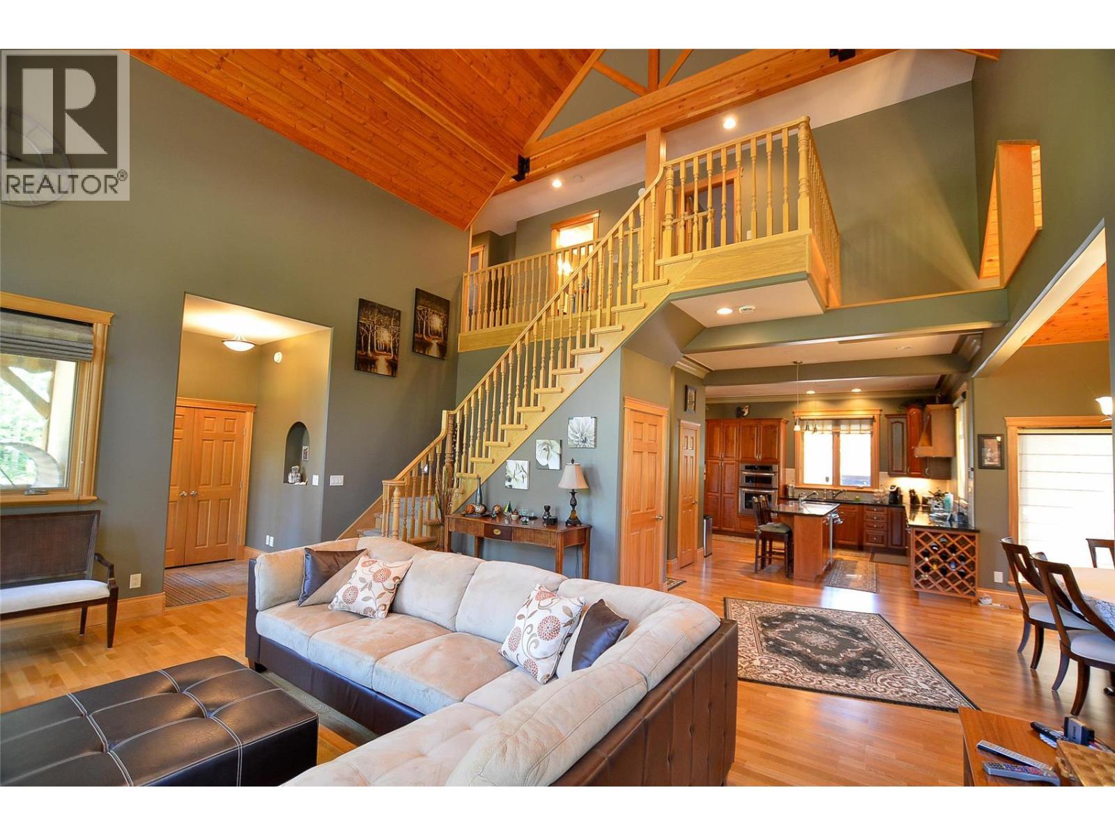$62.50 MonthlyThis exquisite 4-bed 3-bath home is one of the nicest homes in the Mabel Lake Golf and Airstrip Resort, a friendly gated community boasting a beautifully designed Les Furber golf course, with seasonal pro-shop, club house and restaurant. Within walking distance to Mabel Lake, you'll feel like you're on holidays year round. This well-kept treed .326 acre property features golf course views, private yard with firepit, RV site with full hookups and 42x37 storage garage / aircraft hangar on the private grass airstrip. Come by plane, helicopter, or boat; slips available at the marina where you'll also find a camp and liquor store. Bring your kayak, fishing rod, ATV, bikes, and sleds and enjoy the Resort's walking trails, pickleball courts and nearby crown land for year-round recreation. This bright open custom home features as a soaring stone fireplace, gorgeous kitchen with soft-close cabinets and built-in stainless steel appliances and wine rack, main floor laundry and primary bedroom with walk-in closet and ensuite, in-floor heat and built-in vac, an elegant staircase and circular dining room with bow windows. All 3 bedrooms upstairs have double closets and ceiling fans with one built-in desk. The full basement is partially drywalled and ready for development with included wood baseboards and casing. Mabel Lake resort is a gem with good fishing and boating and a public marina on the shuswap rivermouth. Nearby at Kingfisher is a library, playground and community hall. (id:59116)