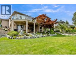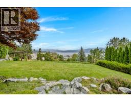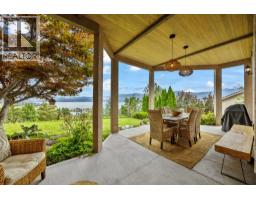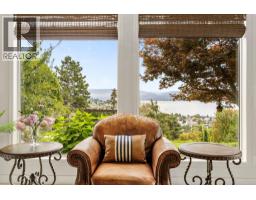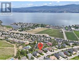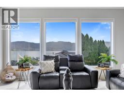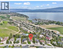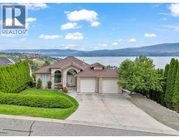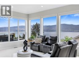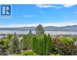 This is what living in the Okanagan is all about! Phenomenal lake views from this perch and definitely a must see! This 5 bedroom home is located steps from Mission Hill Winery and overlooking the vineyards and gorgeous Okanagan Lake, just off the Wine Trail in Lakeview Heights with 180 degree lake views from both levels! 16 foot ceilings on the main with contemporary finishings creating a sleek California feel. Gleaming white tile floors, island kitchen with stainless appliances, quartz counters, high-gloss and laminate cabinetry, all in a beautiful open plan. Easy living with laundry on the main, a spacious and luxurious primary suite with ensuite complete with makeup vanity and beverage fridge, heated floors, soaker tub and glass shower - don't miss the custom walk-in closet with built-in organizers too! Also a second bedroom with full bathroom (cheater ensuite) and murphy bed - great space for your at home office! Lower level has been recently renovated, complete with a 2 or 3 bed suite (depending what you needed) with walk-out covered patio. 9 foot ceilings in lower level with walk-out to patio and full wet bar/kitchen. A great entertaining home with stunning updates. (id:59116)