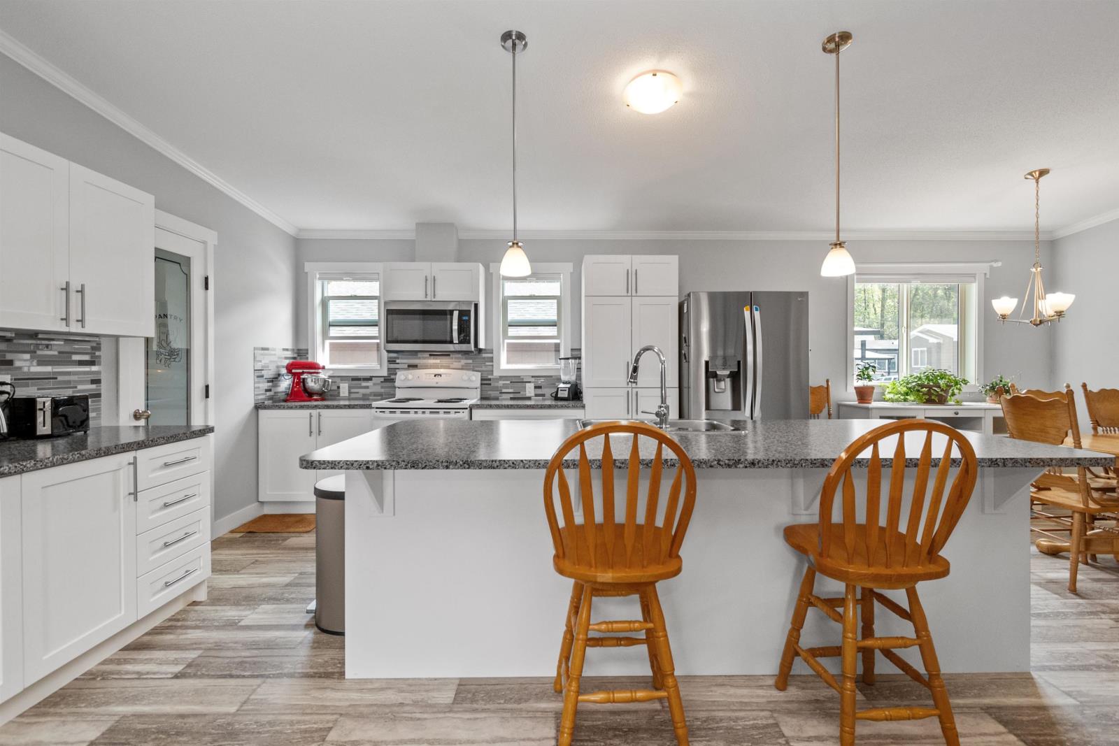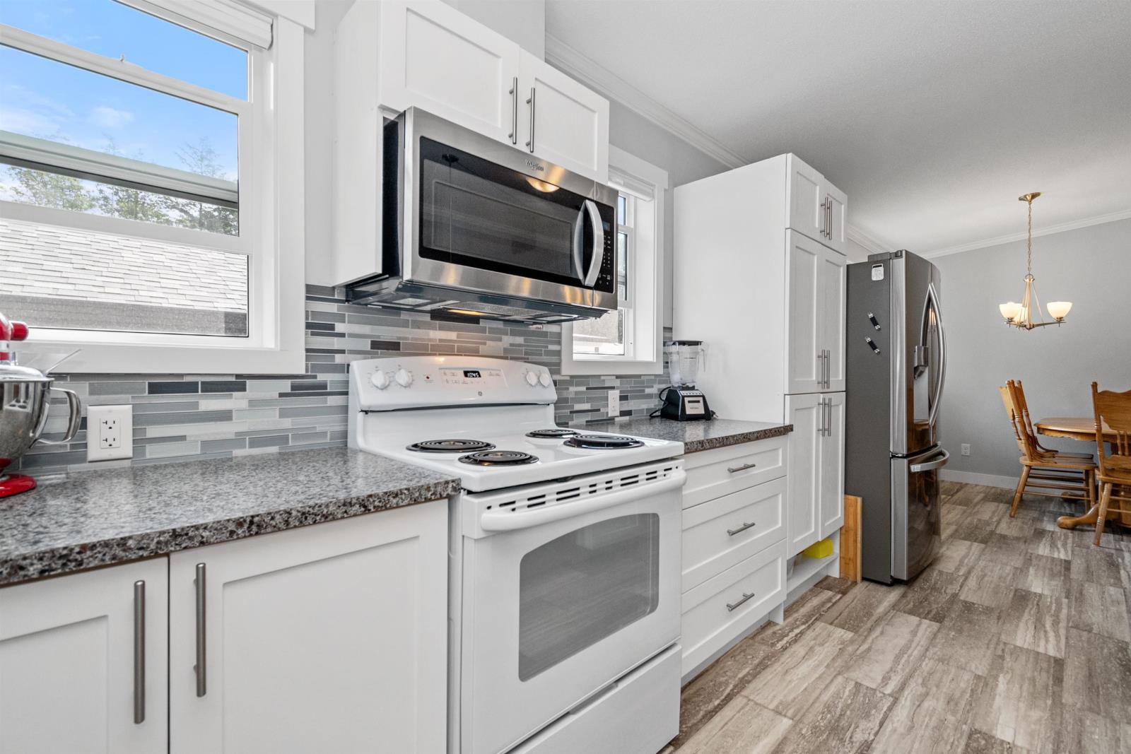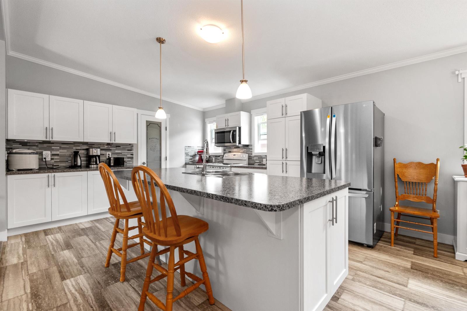 Peaceful living in a community setting. This double wide home is tucked away in a quiet park, a short distance from either Hope or Agassiz. The spacious fenced yard backs onto green space for added privacy. Custom raised steel garden beds w/ watering system are ready for garden lovers. The detached 12x24 garage is all set for a shop, storage or parking. Inside the home you will find an open concept living, dining and bright kitchen area that has a large island and pantry. 3 bdrms offer plenty of space, including a large primary bdrm with w/i closet and 4pc ensuite. This home has 2x6 construction, upgraded large double door fridge, and water softener. This park is 45+, pet friendly and has RV parking available. (id:59116)