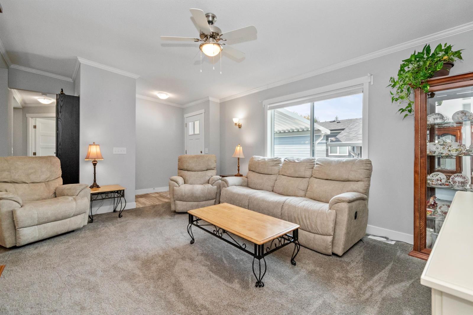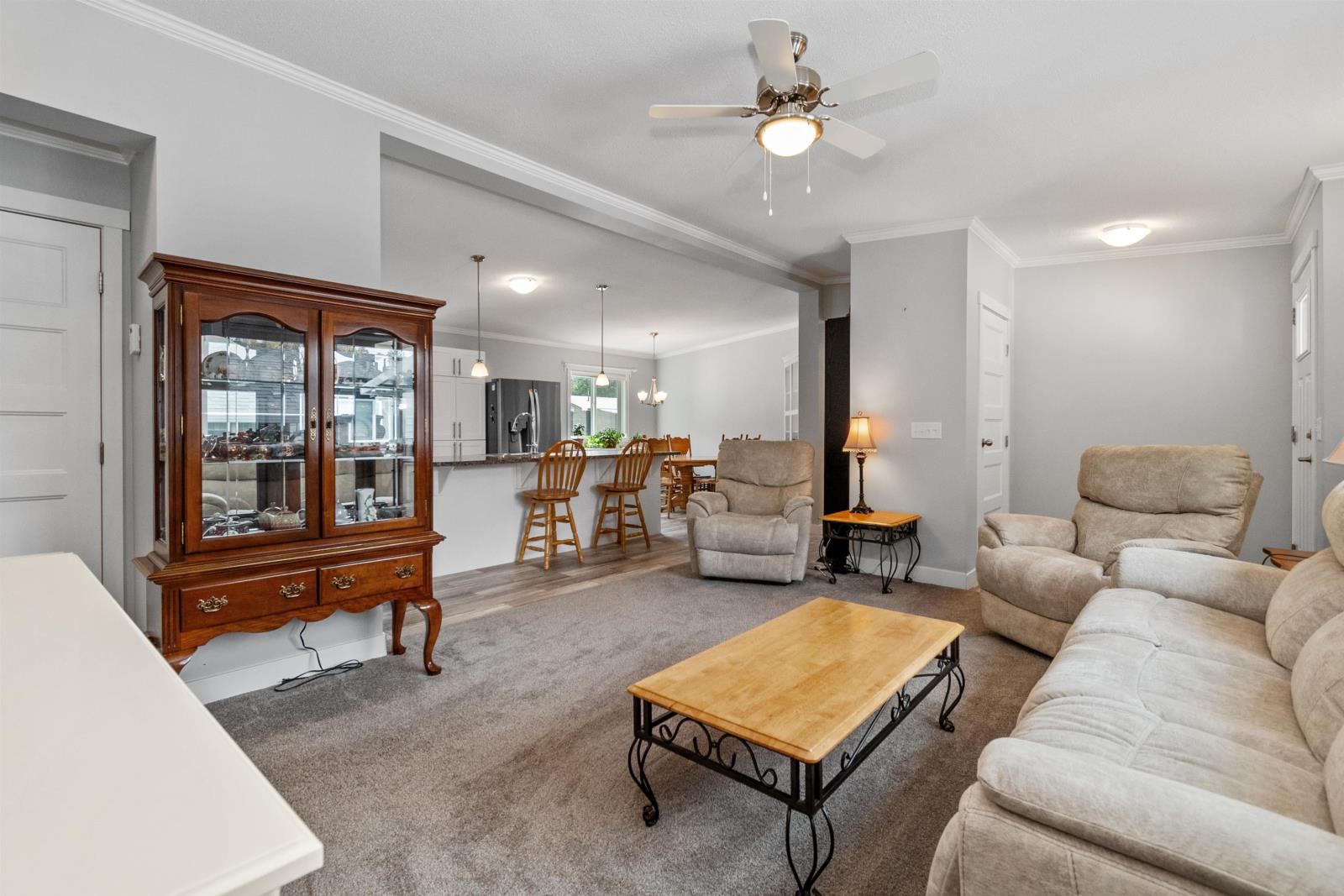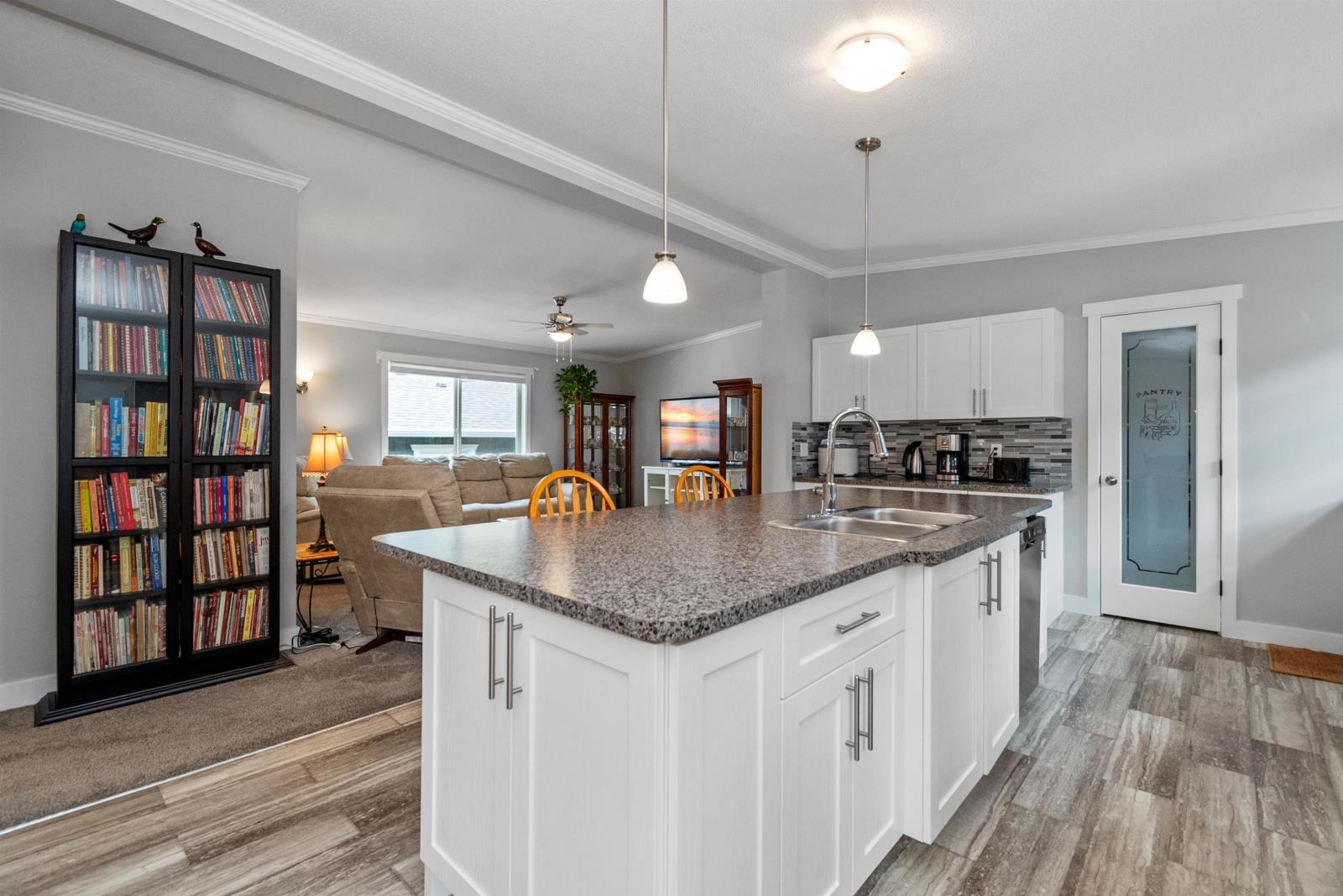 Peaceful living in a community setting. This double wide home is tucked away in a quiet park, a short distance from either Hope or Agassiz. The spacious fenced yard backs onto green space for added privacy. Custom raised steel garden beds w/ watering system are ready for garden lovers. The detached 12x24 garage is all set for a shop, storage or parking. Inside the home you will find an open concept living, dining and bright kitchen area that has a large island and pantry. 3 bdrms offer plenty of space, including a large primary bdrm with w/i closet and 4pc ensuite. This home has 2x6 construction, upgraded large double door fridge, and water softener. This park is 45+, pet friendly and has RV parking available. (id:59116)