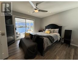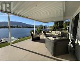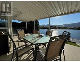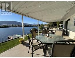 WATERFRONT HOME ON PEACEFUL SOLANA BAY Savor your morning coffee or a glass of one of the region’s exquisite local wines while watching the sunset from your expansive covered porch. Just steps away, your private dock awaits, offering easy access to the main lake for boating adventures. This prime location provides shelter from the wind, even during the occasional Osoyoos storm. Designed for effortless entertaining, this single-level rancher is perfect for hosting close family and friends all summer long. As fall arrives and the weather cools, gather around the outdoor fire pit, basking in the warmth while listening to the soft chorus of crickets. This comfortable 3-bedroom, 2-bathroom home boasts a spacious, open-concept layout, offering breathtaking views of the surrounding mountains and serene bay. The ideal location also places you just a short walk from popular local restaurants, amusement parks, coffee shops, and renowned wineries. Many extra features include: pure fibre internet (Telus), Full Hookups for RV, New Energy efficient appliances (LG). new roof (1017), Underground water sprinklers, New tankless hot water on demand heater, New custom blinds, New flooring, Bluetooth bathroom fans, Ceiling fans in each bedroom, Smart Home light switches, LED energy efficient lights, Central Vacuum with kick plate in kitchen. Make this peaceful retreat your year-round sanctuary, where every season brings its own charm and adventure. (id:59116)