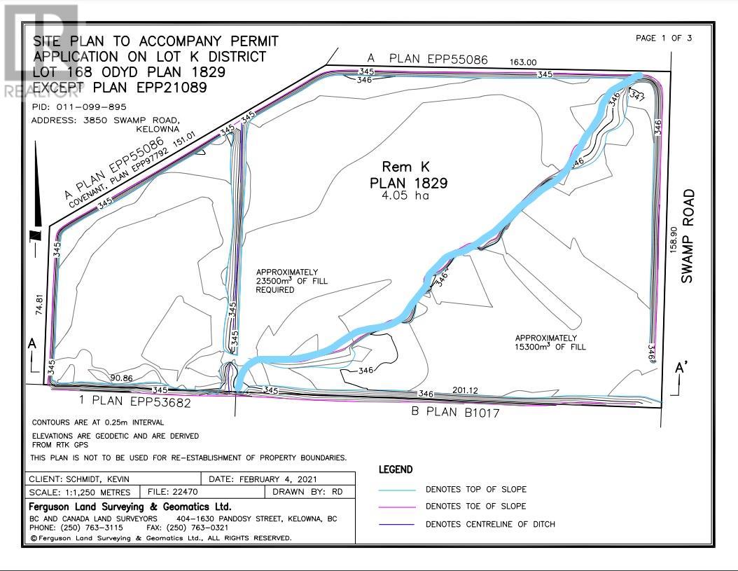Rare Opportunity...10 ACRES of ALR Backing and Siding onto the Mission Creek Greenway, City Parkland and private land! Build your dream home and enjoy rural beauty and privacy yet only minutes drive to all amenties. Great potential for Equestrian use, and potential trail rides on the greenway. Historically back property was hay. Centrally located, minutes to H2O centre, recreation trails, golf, schools. Approx one third has approx 1 metre of fill (soil test on file). Two thirds more swamp grass and pasture some trees and pond. Water ditched around perimeter and through middle (Site plan on file), 6-8' wire fenced on N/W/E sides, partial cross on South. Property drains into the City of Kelowna ponds, small pond in middle near back. Easy access off Swamp Rd. Subject to ALR zoning, A1, flood zone requirements and guidelines. GST applicable. (id:59116)