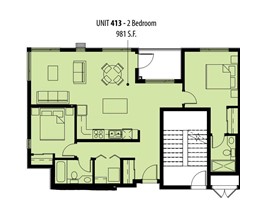 2 Bedroom 2 Bathroom 981 ft2