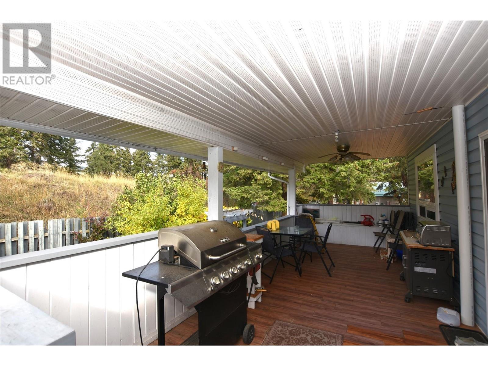 Welcome to 415 Hummingbird Avenue in Parker Cove. A cozy and comfortable 2 bedroom 3 bathroom home set on a nice flat lot. Generous sized kitchen with oak cabinets, large living room with a gas (propane) fireplace and easy care laminate flooring. Sliders from the dining space out to a 36 x 10 covered deck with gas (propane) hook up for yur BBQ. Spacious master bedroom with a full 4 piece en-suite. The lower level features a second bedroom, a craft/utility room with a utlity sink, lots of storage and a cold room, a full 4 piece bath and a family room. There is also a large workshop room down here. Other features include a metal roof, fenced yard, radon mitigation system, pex plumbing, propane furnace (2018), hotwater tank about 4 years old, air conditioning (2021) all new windows except two. The annual lease on this home is currently $3455.83 and is registered to 2043. If your looking for an affordable opportunity to live in the Okanagan near the lake then you won't want to miss viewing this fabulous home. (id:59116)