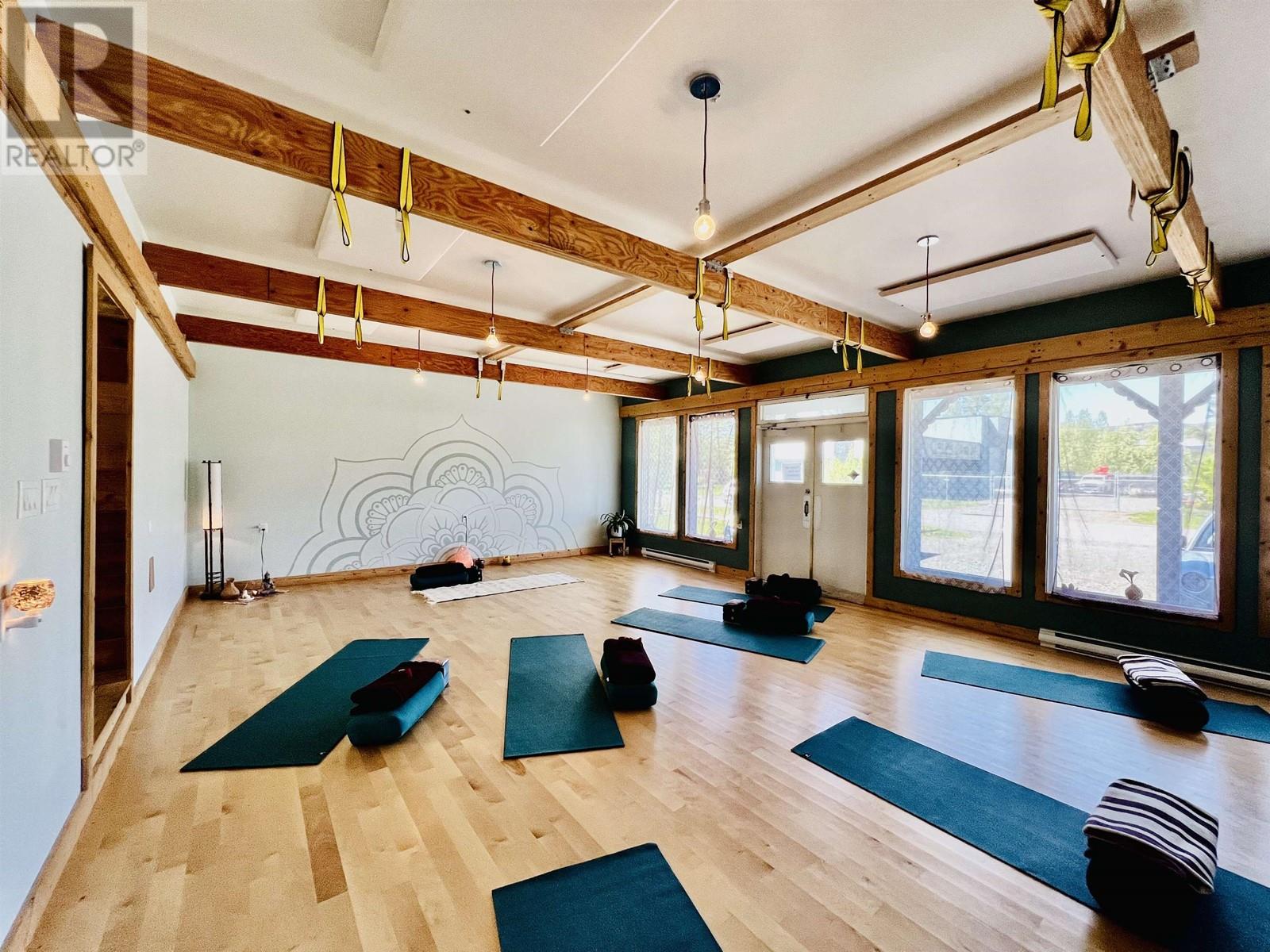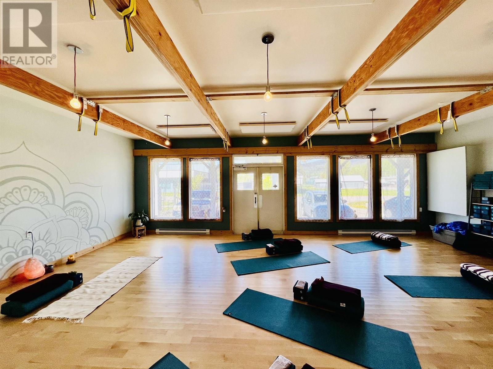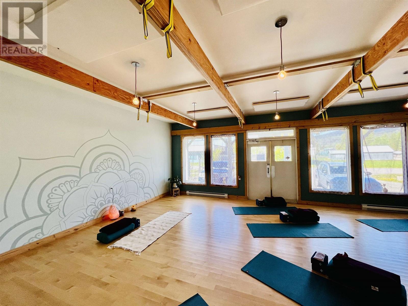 Nestled in New Hazelton with stunning mountain views is this fantastic commercial property. This property is currently being used as a successful yoga studio, and hair salon. The commercial zoning allows for many business opportunities such as, but not limited to Brewery, Bakery, Animal Hospital, Health and wellness centre, Hostel, Greenhouse/plant nursery and allows for an accessory dwelling unit. This property has been updated with beautiful birch floors in the yoga studio and offers tons of natural light from the plentiful windows. The roof trusses, plumbing, electrical, sub floors and insulation have all been upgraded within the past few years. This property has endless potential in a fantastic location!! Also on Residential see MLS# R2886740. (id:59116)