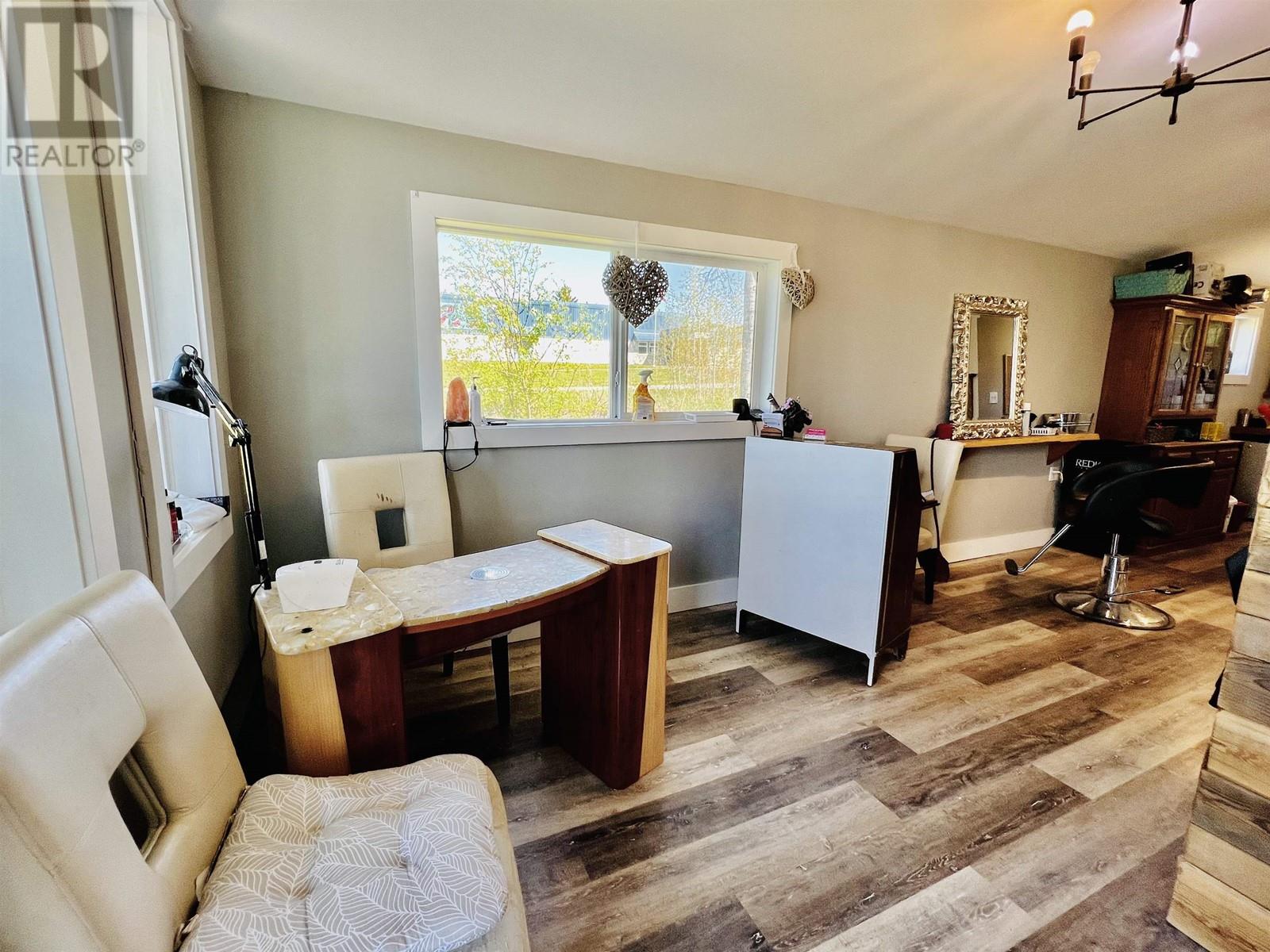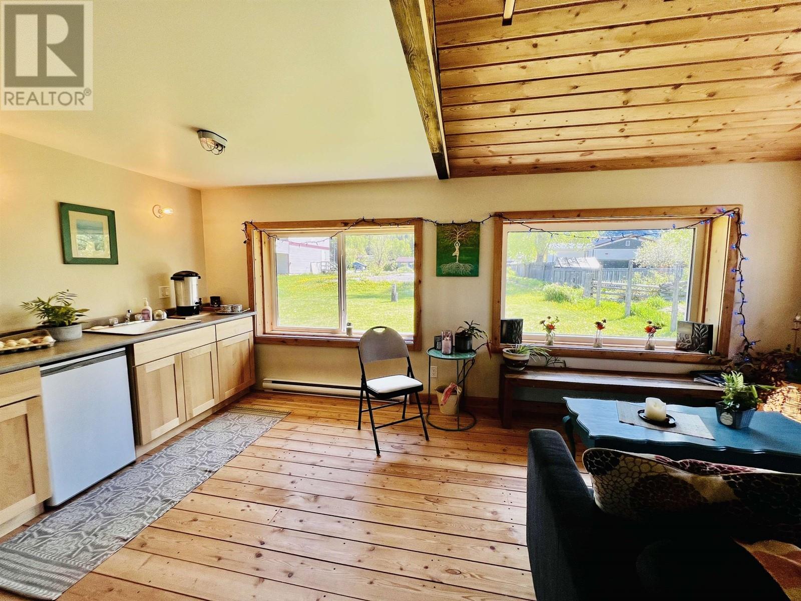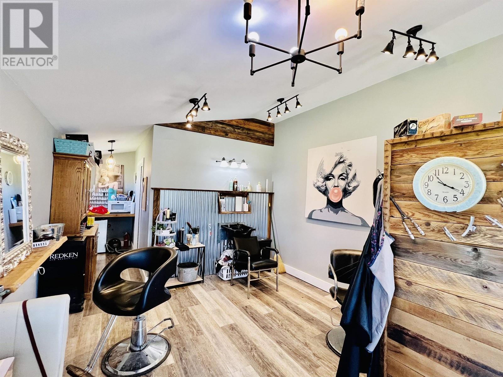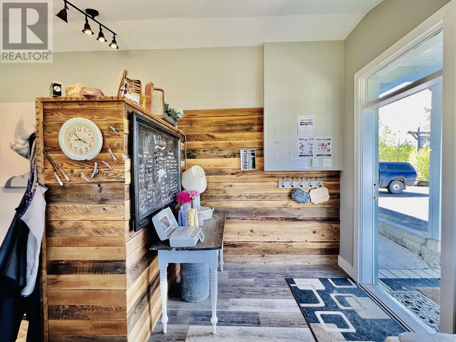 Nestled in New Hazelton with stunning mountain views is this fantastic commercial property. This property is currently being used as a successful yoga studio, and hair salon. The commercial zoning allows for many business opportunities such as, but not limited to Brewery, Bakery, Animal Hospital, Health and wellness centre, Hostel, Greenhouse/plant nursery and allows for an accessory dwelling unit. This property has been updated with beautiful birch floors in the yoga studio and offers tons of natural light from the plentiful windows. The roof trusses, plumbing, electrical, sub floors and insulation have all been upgraded within the past few years. This property has endless potential in a fantastic location!! Also on Residential see MLS# R2886740. (id:59116)