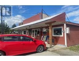 Excellent investment property updated with Hardi plank, smart trim and new windows (front commercial space) and torch-on roof. Recent work done on carport attached to 2 bedroom suite, including windows and sheeting. Front commerical space consists of The Annex Thrift Shop at 876 sq ft and a 372 sq ft space now vacant. 876 sq ft unit consists of a front area for display, kitchen and 2 piece bathroom and large back display/storage area. 372 sq ft area was previously used as a Forestry office and has a back room and a 2 piece bathroom. 2 bedrooms suite currently rented for $1220.00 per month and they pay their own BC Hydro bill. 2 sheds in the back of the lot, one used by the Annex Thrift Shop. Opportunity to live in the suite and run a business out of the front commerical space. Also listed as mls 10328606. Call listing realtor for more info. (id:59116)