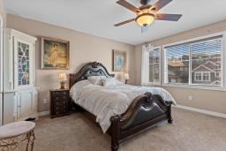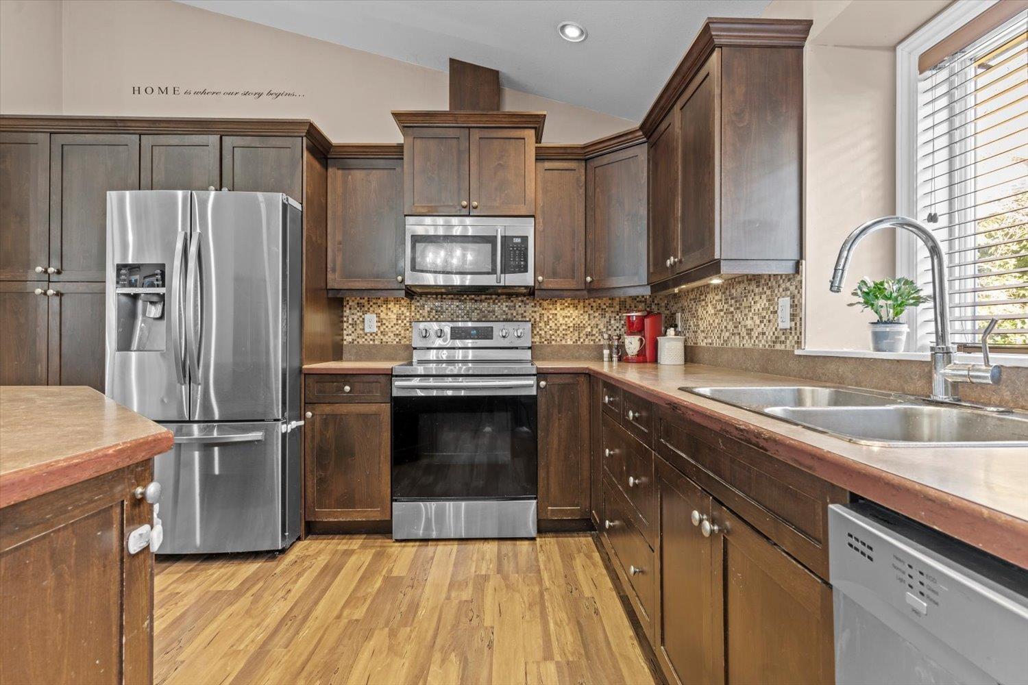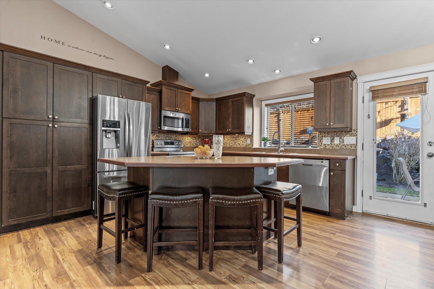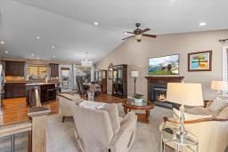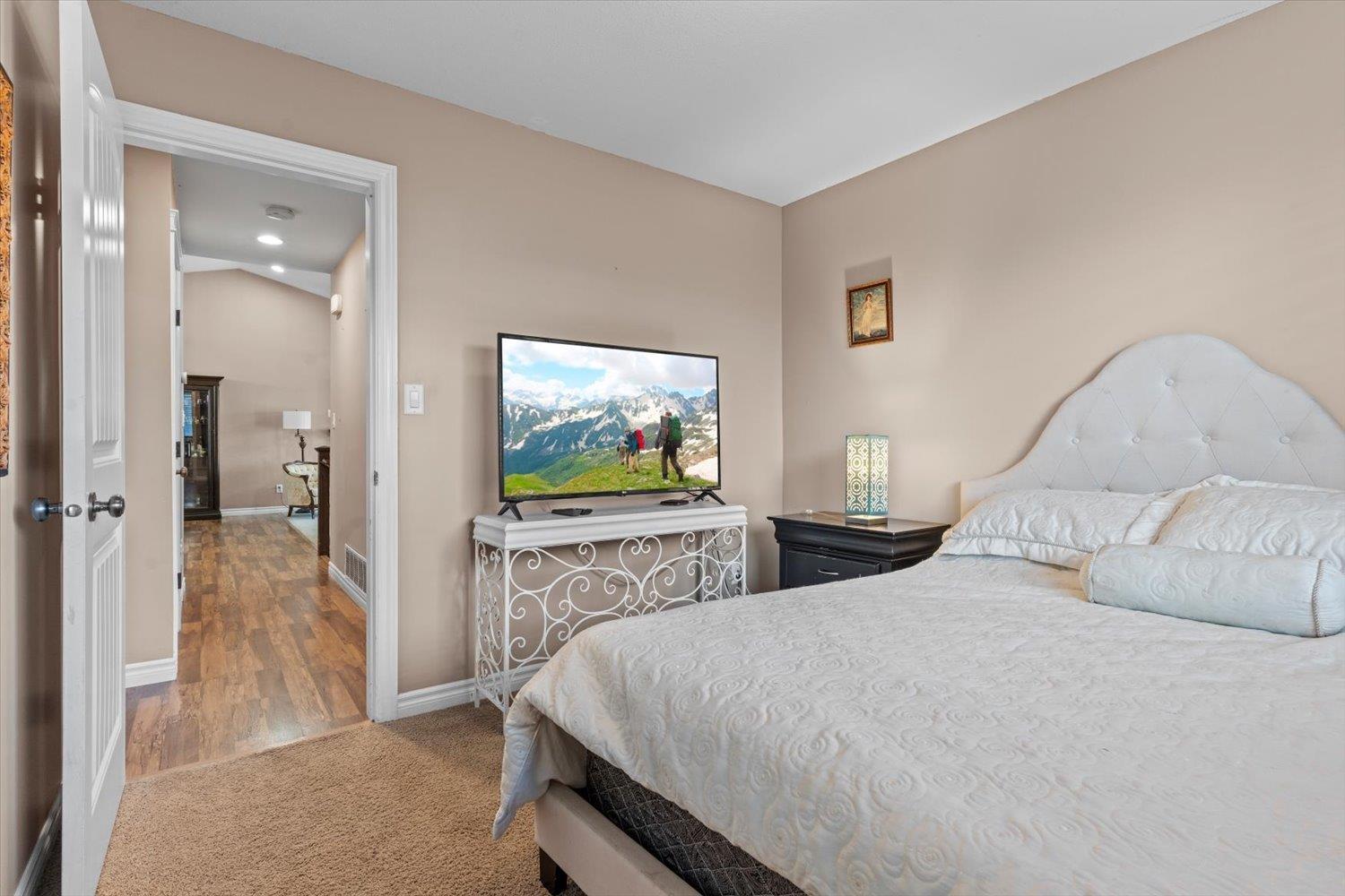 *Great 5-Bedroom, 3-Full Bathroom Family Home in Promontory!* The open-concept living and dining areas provide a spacious and flexible layout, ideal for hosting. Plenty of storage, incl. built-in pantry with pullouts, a 4-seater island, stainless steel appl. a tiled backsplash, and under-cabinet lighting. Enjoy access to two patios, where you can take in morning mountain views or afternoon valley scenery! The upper level includes 3 spacious beds, including a master suite with a walk-in closet and a full ensuite bathroom featuring both a tub and a shower. The entry level welcomes you with a tiled foyer and includes a bright den, a laundry room with a sink and storage, and a huge living room connected to the Kitch. Additionally, there are two more beds. The home also boasts a double garage. (id:59116)