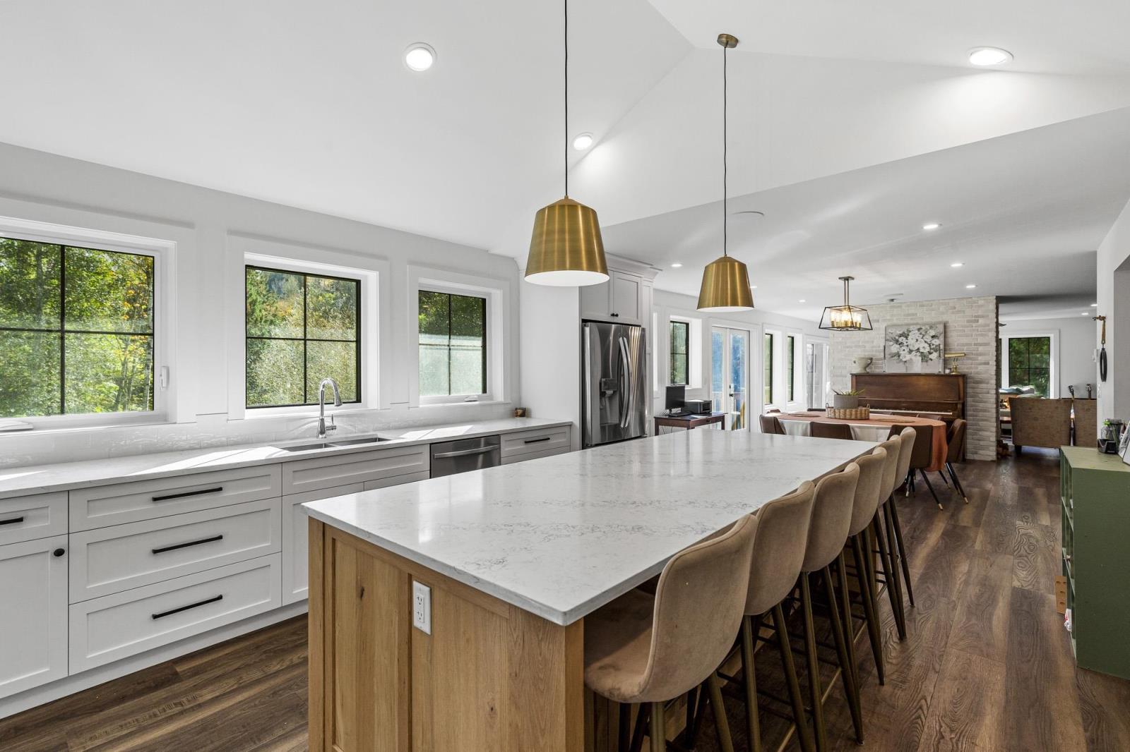 Beautiful renovated home on 3 flat acres in lovely Ryder Lake! Enjoy tranquility in comfort! The large upgraded kitchen including s/s appliances, quartz countertops, lots of working space and seating. The cozy wood-burning fireplace, lots of natural light, and large rec room area makes this a great space to play and entertain. The outdoor space includes fenced-off areas for kids, pets, or livestock, and lots of room for gardening and hobby farming. Quality work and long-lasting materials have gone into the recent complete renovation. Detached 40'x28' workshop offers two bays for vehicles/equipment and a mezzanine for extra storage. This home is gorgeous in the photos, even better in person! Book your viewing today! (id:59116)