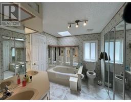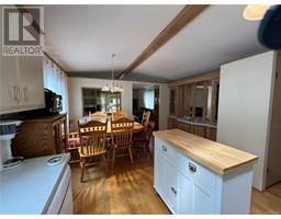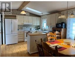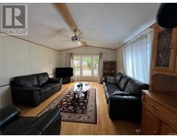 Excellent location backing onto greenbelt. This furnished 2 bedroom mobile home is on its own land! Spacious living and kitchen area with updated appliances. Oak flooring in living, kitchen and hallway. Outside is a fully fenced yard and under the partially covered deck is a saltwater arctic spa hot tub. No need to worry about parking with this massive paved drive that would easily fit your RV or motorhome. This 1990 mobile is in good condition throughout. Windows 2021, Metal roof 2014, HWT 2017, Nothing to do but move in, it's all here, shouldn't you be? (id:59116)