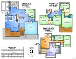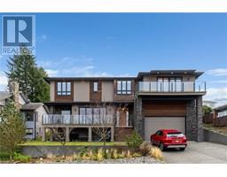 Beautiful semi-waterfront home located in the highly desirable area of north Nanaimo. This unique 5,676 sq. ft. custom home features 6/7 bedrooms and 5 bathrooms, along with large picture windows that offer panoramic views of the ocean and coastal mountains. The main level boasts a functional open-concept floor plan with a spacious living room and high ceilings, a gourmet kitchen equipped with modern amenities, and access to a large deck facing the ocean. A formal dining room and cozy family room are situated at the back, overlooking the flat, fenced backyard with southern exposure. On the second level, the master suite offers exceptional views, a lavish ensuite, a walk-in closet, and a private deck facing the ocean. This level also includes two additional spacious bedrooms and a 4-piece bathroom. The lower floor features a home theatre, a guest room with an attached bathroom, and a legal 2-bedroom suite. Outside, minimalistic, low-maintenance landscaping allows the property's natural beauty to shine. The home is within walking distance to the ocean and beaches, as well as elementary and secondary schools, with a 5-minute drive to shopping malls. Measurements are approximate; please verify if important. (id:59116)