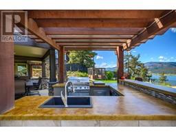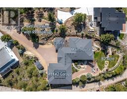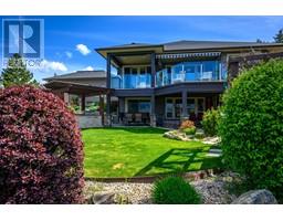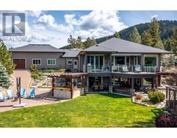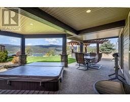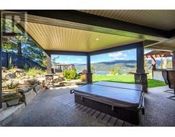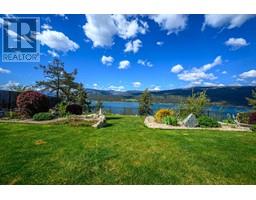 Vacant & easy to view. This residence & property is truly in a league of its own. Step into a realm of unparalleled elegance & exclusivity with this exceptional lake view estate on .82 acres of serene privacy with grand garage package & guest house. Offering over 5000 sq. ft. of opulent living space, this residence is a testament to refined living. The main level boasts a spacious open kitchen with granite counters, seamlessly flowing into expansive dining & living areas adorned with vast windows framing breathtaking views of the tranquil lake. Step onto your covered deck, complete with a built-in kitchen. Descend into the basement to discover a media room & bar area, leading to the ultimate backyard oasis. Here, entertainment knows no bounds with a luxurious hot tub & outdoor kitchen, perfect for hosting unforgettable gatherings. The garage package is simply unmatched with a colossal 2100 sq. ft. space featuring a 20-foot door & doubles as a regulation pickle-ball court. The driveway provides a 2nd access to the upper level with unlimited parking space & RV hook-up. Safety & functionality are paramount with 400 amp service & fire suppression system. Residents gain exclusive access to a privately shared beach & boat launch area just minutes away. Located in the highly sought-after Adventure Bay area all within reach of the Okanagan's four-season lifestyle amenities. Own a piece of paradise. Contact the Listing Agent or your Agent today to schedule a viewing. (id:59116)