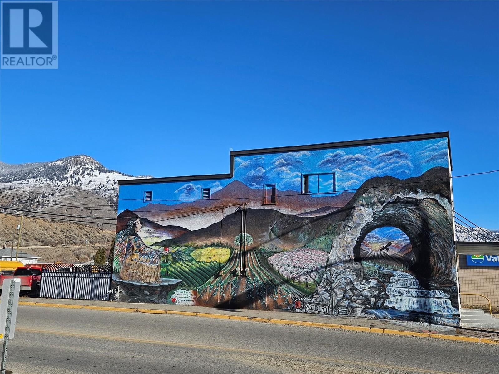 Corner Lot Downtown Keremeos! Standout building with a Mural Facing the traffic coming down Highway 3 ( Main Street ). This property has VC Zoning with a very broad reach of allowable uses. Currently leased to a great tenant, and an apartment at the back with 1 bedroom is being used by the owner ( ready to rent out and make more income, it was previously rented for $1,300 ). There is a 2 bedroom 1 bathroom apartment on the 2nd floor. 3 entrances into the building, with the possibility of adding a 4th quite easily. Large 0.165 acre parcel with 4 designated parking spots along 7th Ave, and 6 more along the back alley. Forced air gas heat and separate power meter for each floor. Apartment is currently tenanted - 24hr minimum notice is required for showings. Measurements are approximate and should be verified if important to the buyer. (id:59116)
