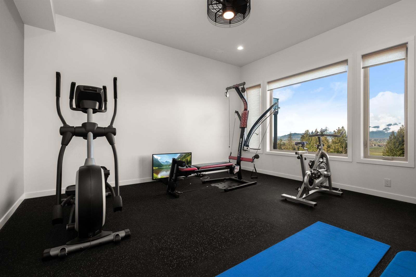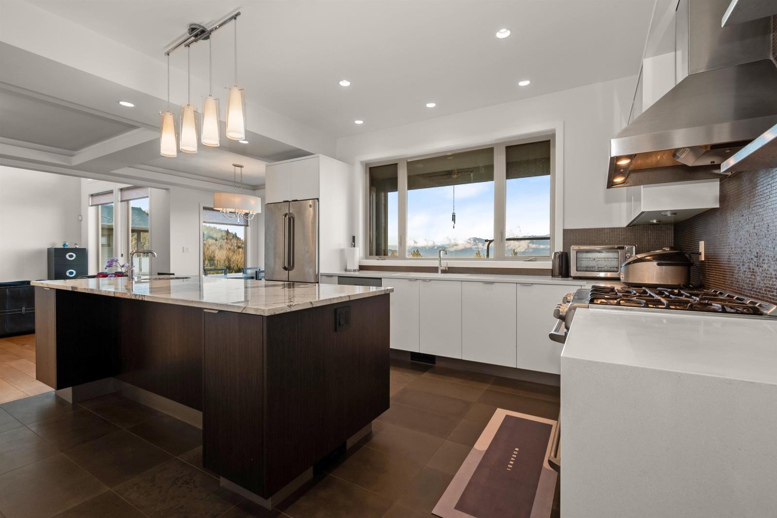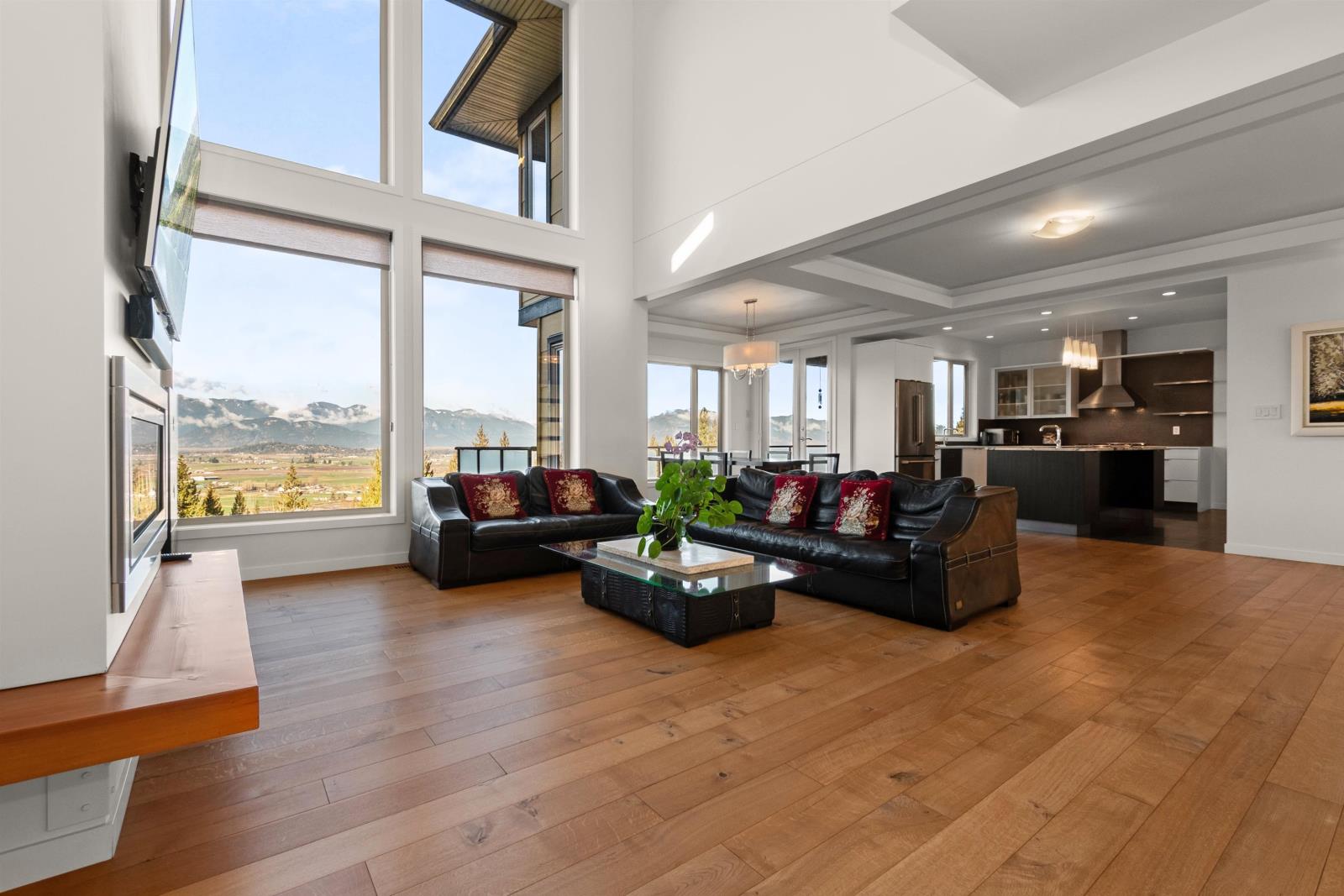 This executive custom designed home nestled on beautiful eastern hillside. Lot size 0.41 acre. Extremely long frontage offers phenomenal views from all rooms. The home is built with attention to absolutely every single detail. Sky-high ceiling with huge windows in the living room and hardwood floor throughout. Spacious Kitchen w/ high-end appliances, huge island with marble counter. Office and Master on the main. All 4 bedrooms have their own heated floor ensuite, walk in closet. Media room, gym and Sauna in the basement. Gym could be the fifth bed. Large entertainment VIEW PATIO to enjoy the sunsets over the valley. Heat Pump, HRV, Central Vac, Triple garage and a lot more. Only a few minutes to highway-1 and amenities, This home covers all you need! (id:59116)