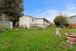 Welcome to one of the largest private yards in Maple Meadows! This 2-Bedroom manufactured home located in the heart of a well-maintained park in Sardis, boasts a prime corner lot location with a spacious backyard. You're sure to enjoy this peaceful community in your 2 bed home with 1 bathroom with oversized, easy-access tub. Easy care laminate flooring, updated windows, and fresh white kitchen cabinetry add a modern touch to the home. Plus you're located just a quick walk away from local shopping centers, parks, and coffee shops. Enjoy your days soaking in sunlight in your private backyard that is perfect for gardening. Small dogs allowed, no cats. Come take a look today! (id:59116)