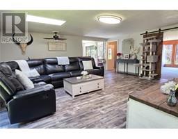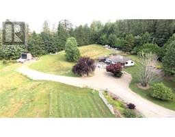 Just 35 minutes from Campbell River, this 12.8 acre piece of paradise awaits you. Fully landscaped with a perimeter of trees, the privacy is unfounded, with a nicely updated family home, garden area, separate barn with tack stalls and loft, and acres of grassed areas for horses, or just room for kids to run! The home features a massive primary bedroom with it's own woodstove and wall to wall windows and patio overlooking the sprawling oasis and the mountain views. The 2nd bedroom off the primary is ideal as a nursery or for toddlers. The main living area is open and inviting with updated flooring and beautiful country kitchen. Downstairs you find a spacious family room plus an extra rec room for your gym, as well as a basement workshop, with an additional 700 sq/ft attached shop. An abundance of fruit trees, berry bushes and garden beds, along with a new playground for the kids. New perimeter drains in 2022 and new septic in 2016. Fantastic opportunity for a hobby farm exists here. (id:59116)