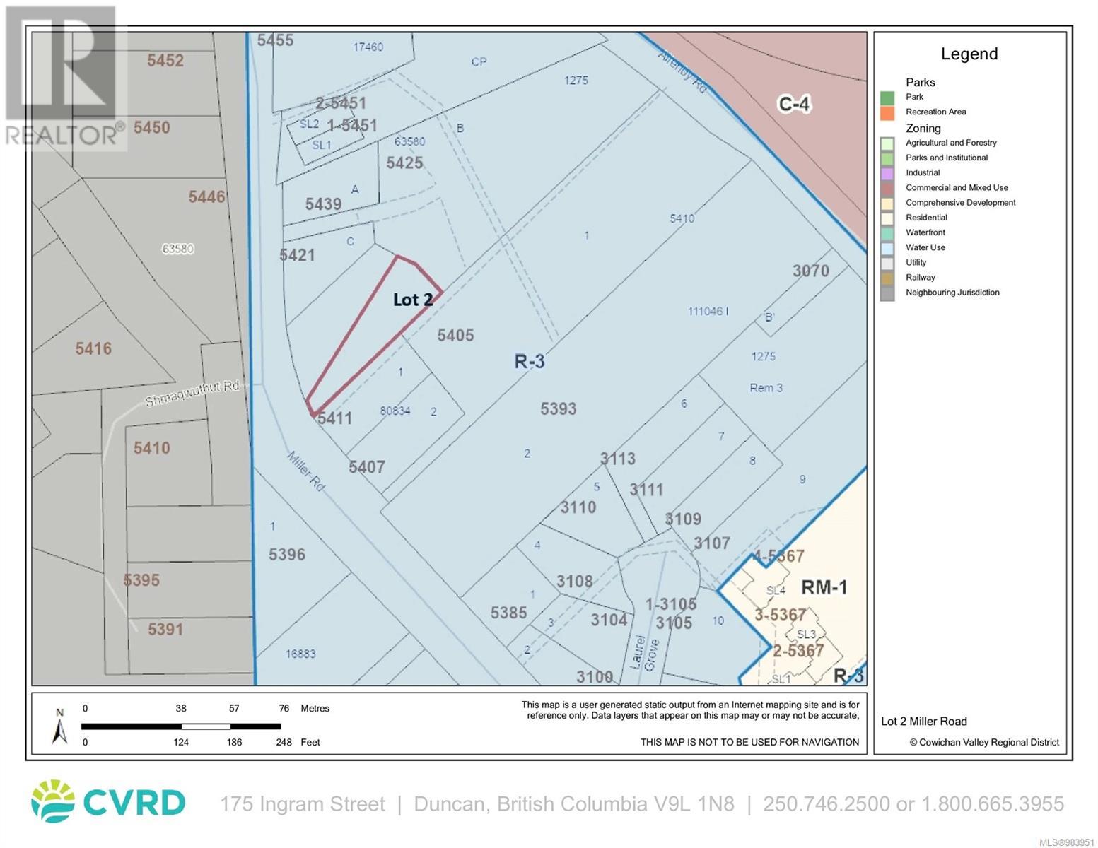 Rare 0.23 acre R3 zoned building lots on Miller Road in Duncan, just moments from all of your daily amenities and within walking distance to downtown. This location is also just a short drive to multiple trails, farm stands, Bright Angel, Glenora Trail Head and easy highway access for commuting. This unique opportunity consists of two fully registered building lots which are being sold separately but are situated side by side. Creating a multitude of options to purchase one or both of them as a group buy, family, investor, partnership or builder. The flat topography, sewer & water at the lot line, paired with the zoning allowing for legal suites either attached or detached, brings you lots of possibilities. Maybe a home and a shop with a legal suite perhaps? Come build your dream home/s, keep it as a holding property or use it as a build to sell investment. Price is plus GST. (id:59116)