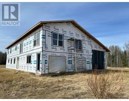 Large house on quarter section at the end of quiet road in Beryl Prairie, Hudson's Hope. Only 9 minutes to town. This large framed shell" sits on an engineer approved concrete slab. House "shell" has been roofed with asphalt shingles in 2023, soffits & fascia are done too. Windows &exterior doors are in, except garage doors. This two storey home being built with permits & all done properly to date . The concrete slab is 50’x80'. House is to build, to have a 20 'x 80' shop on main floor with a 1,350 square foot rental suite & a double attached garage for main residence. The main residence on upper level is framed to be a 2,400 4-bedroom, 1-den, 2-bath home. A well is dug and produced good quantity of water in summer of 2022. The privacy and peacefulness at this property are like no others. (id:59116)